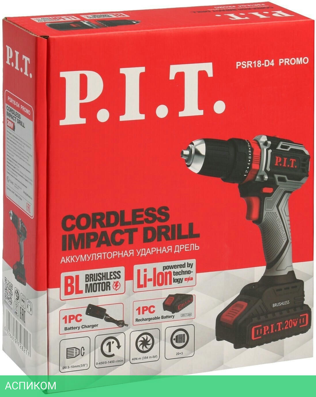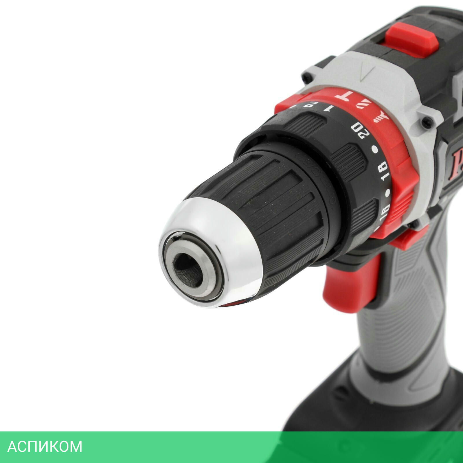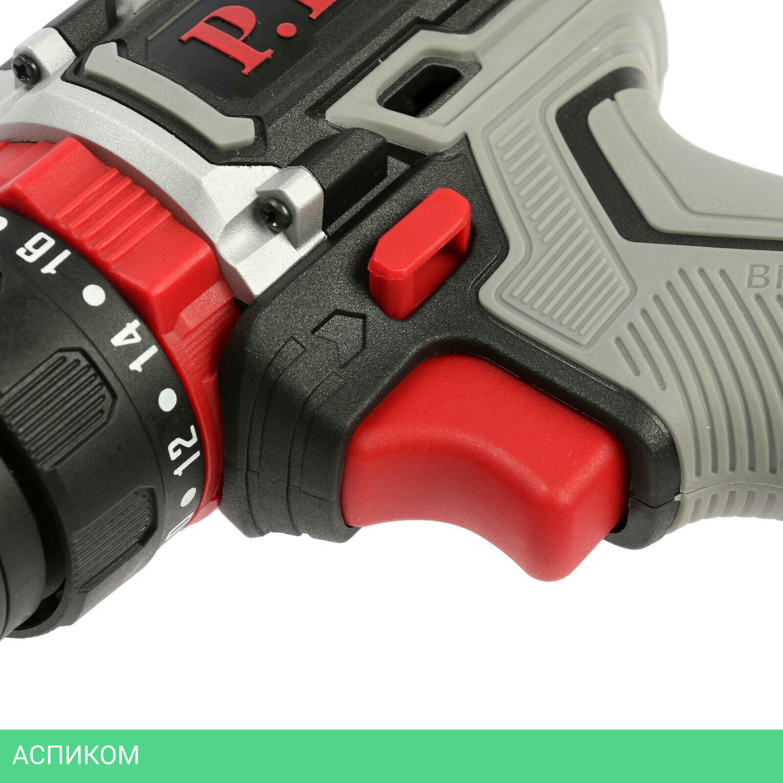 Дрель аккумуляторная, коробка, зарядное устройство, 1 аккумулятор, руководство по эксплуатации, набор бит (10 шт), магнитный адаптер, сверло по дереву, сверло по металлу