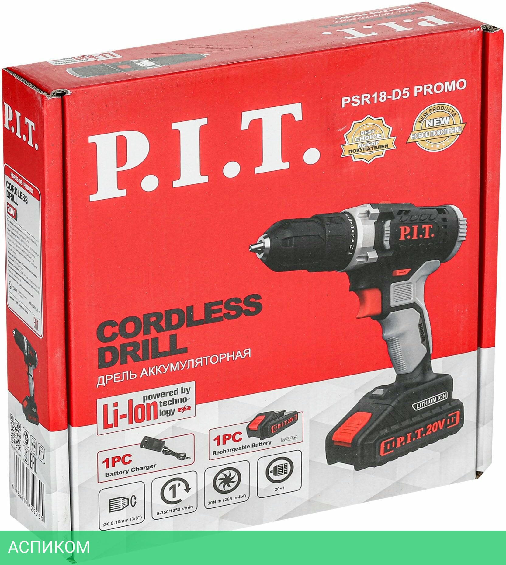 дрель аккумуляторная, коробка, зарядное устройство, 1 аккумулятор, руководство по эксплуатации, набор бит (10 шт), магнитный адаптер