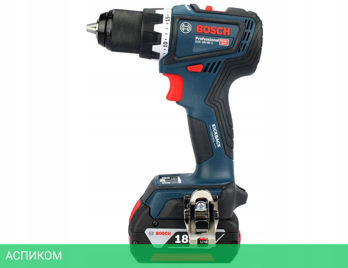 дрель-шуруповерт Bosch GSR 18V-90 C; аккумулятор 18 В х2; ЗУ; кейс