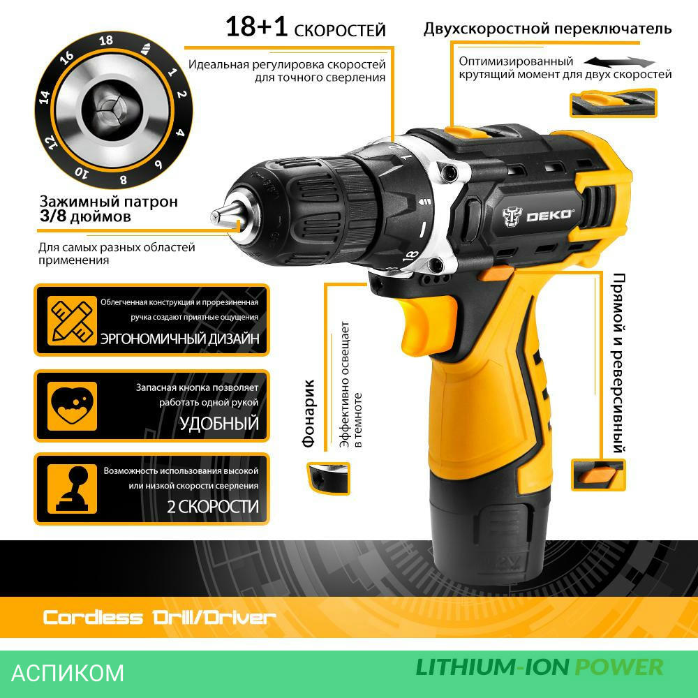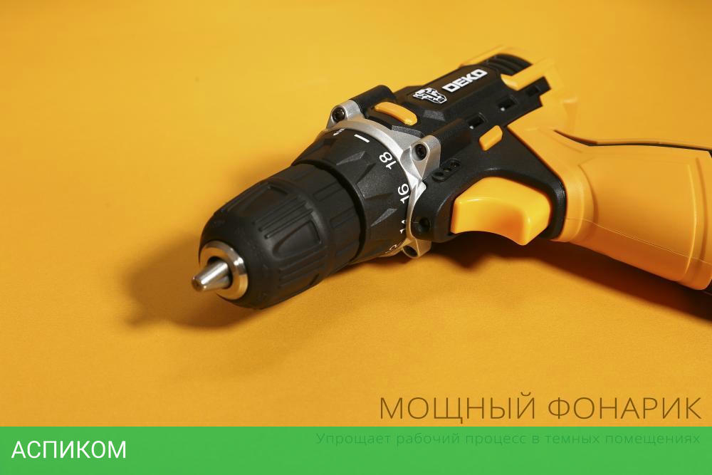 Облегченная конструкция и прорезиненная ручка создают приятные ощущения, а дизайну эргономики. Фонарик эффективно освещает в темноте. Переключатель для прямого и реверсивного вращения. Зажимной патрон 3/8 дюймов для самых разных областей применения.
