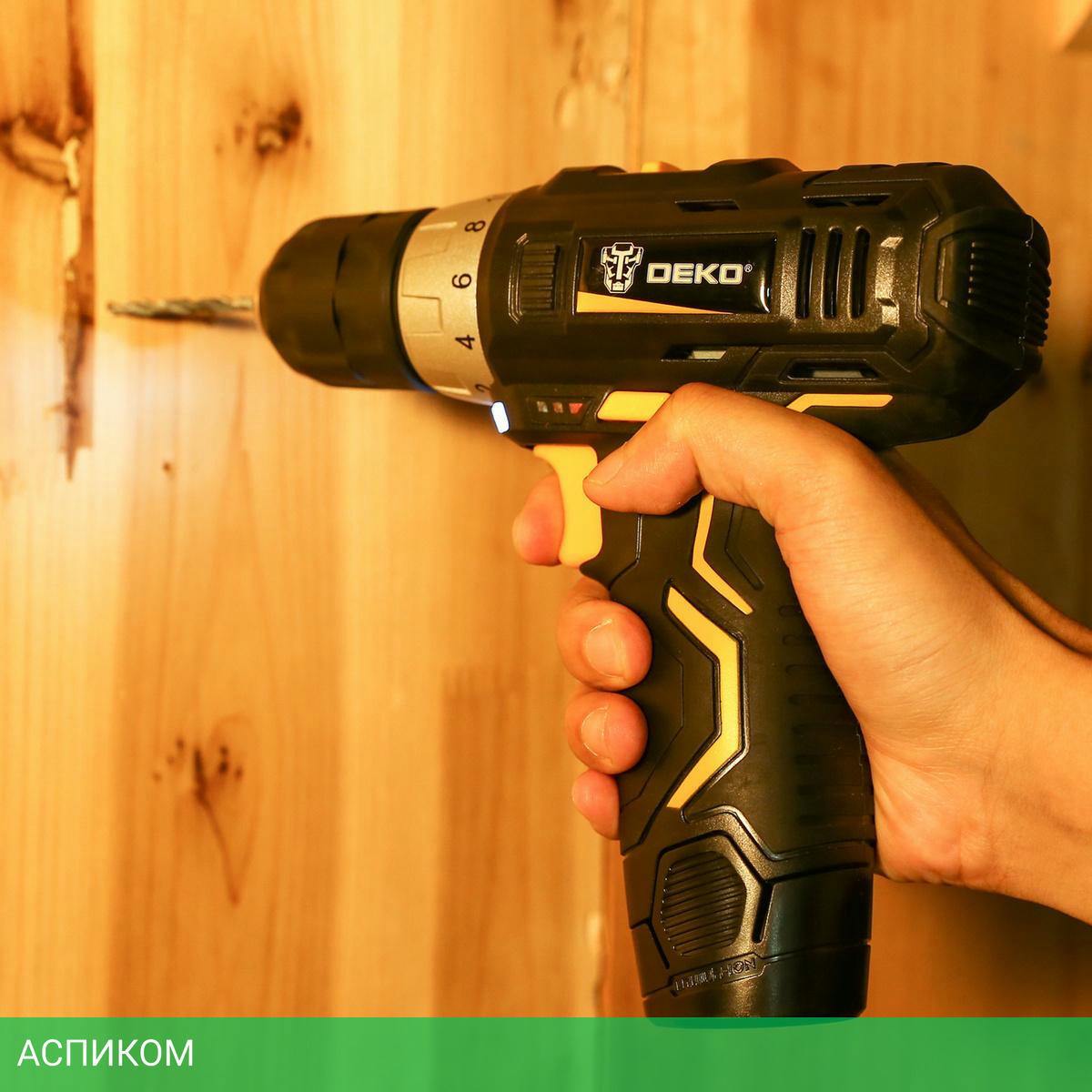- Дрель-шуруповерт;- Аккумулятор - 1 шт;- Зарядное устройство;- Биты - 6 шт;- Держатель бит - 1 шт;- Сверла - 6 шт;- Инструкция;- Коробка.