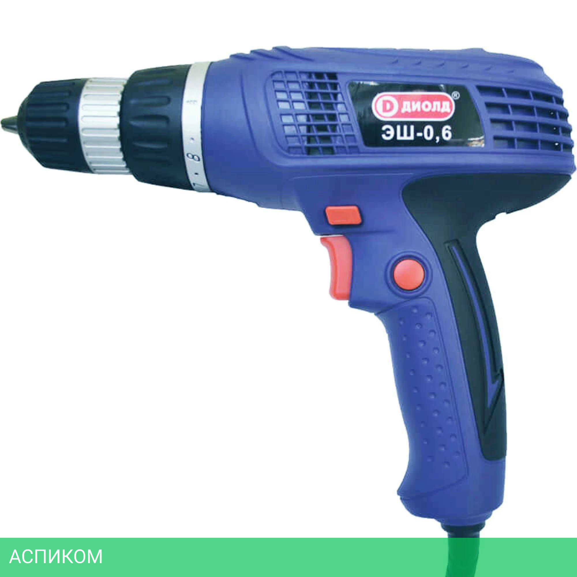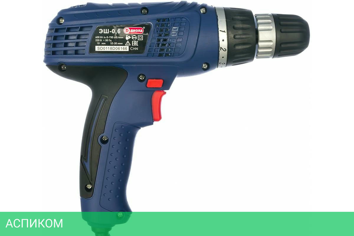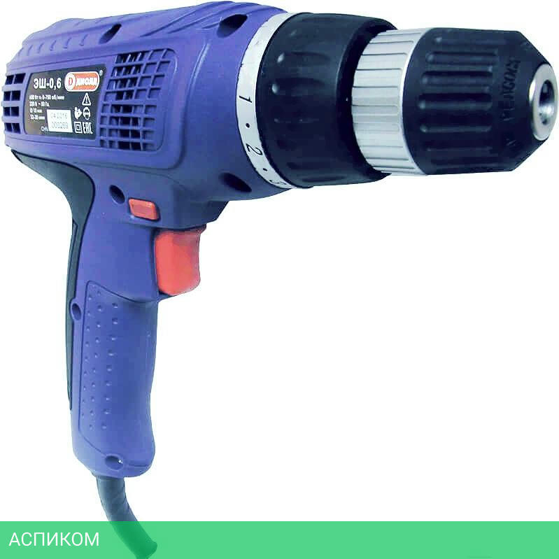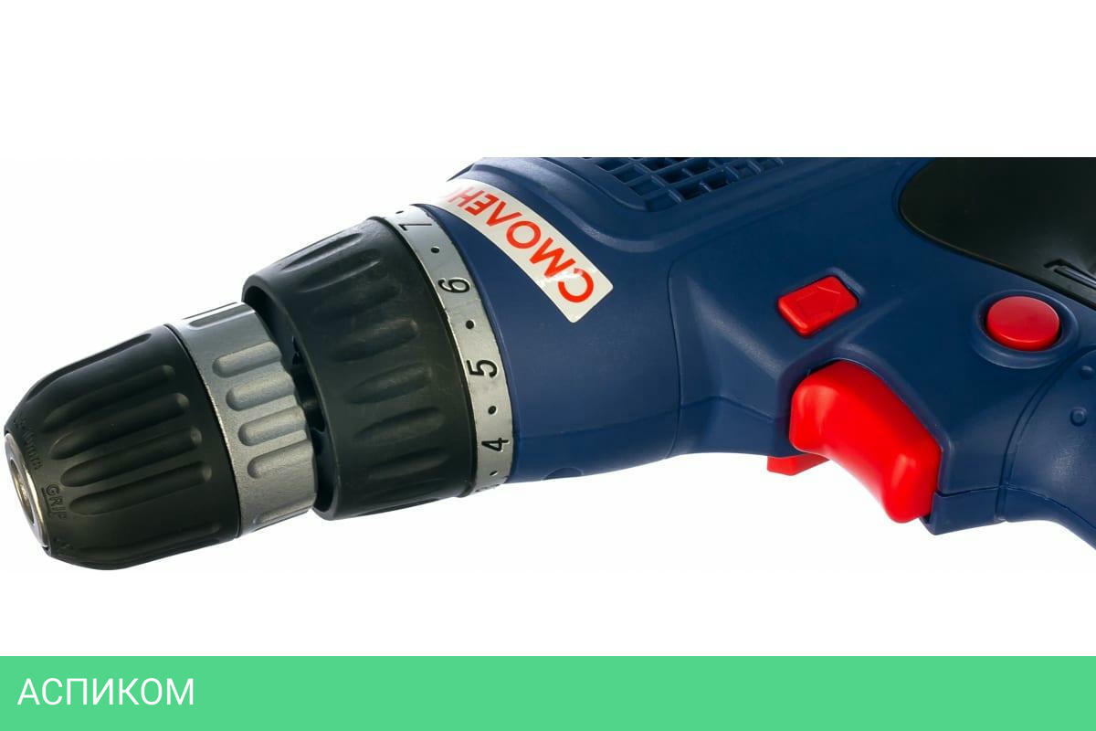 Выключатель с фиксацией и электронной регулировкой числа оборотов. Удобно расположенная клавиша реверса. Надёжный редуктор с металлическими шестернями. Надёжный коллекторный двигатель с воздушным охлаждением. Эргономичная обрезиненная рукоятка для удобного хвата. Длина сетевого шнура 4 метра.