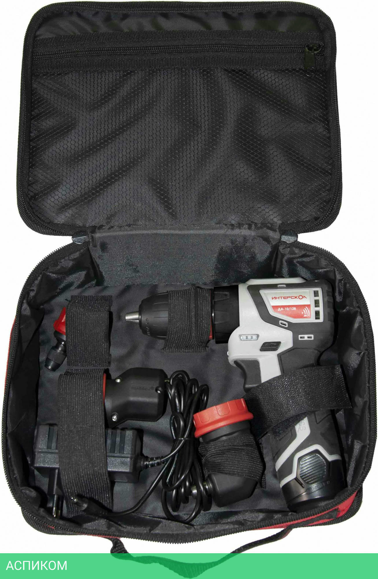 Машина ручная сверлильная аккумуляторная, патрон сверлильный БЗП, редуктор эксцентриковый насадка, редуктор угловой насадка, патрон для специальных сверл насадка, инструкция по безопасности и руководство по эксплуатации, гарантийный талон, батарея аккумуляторная, 2,0 А.