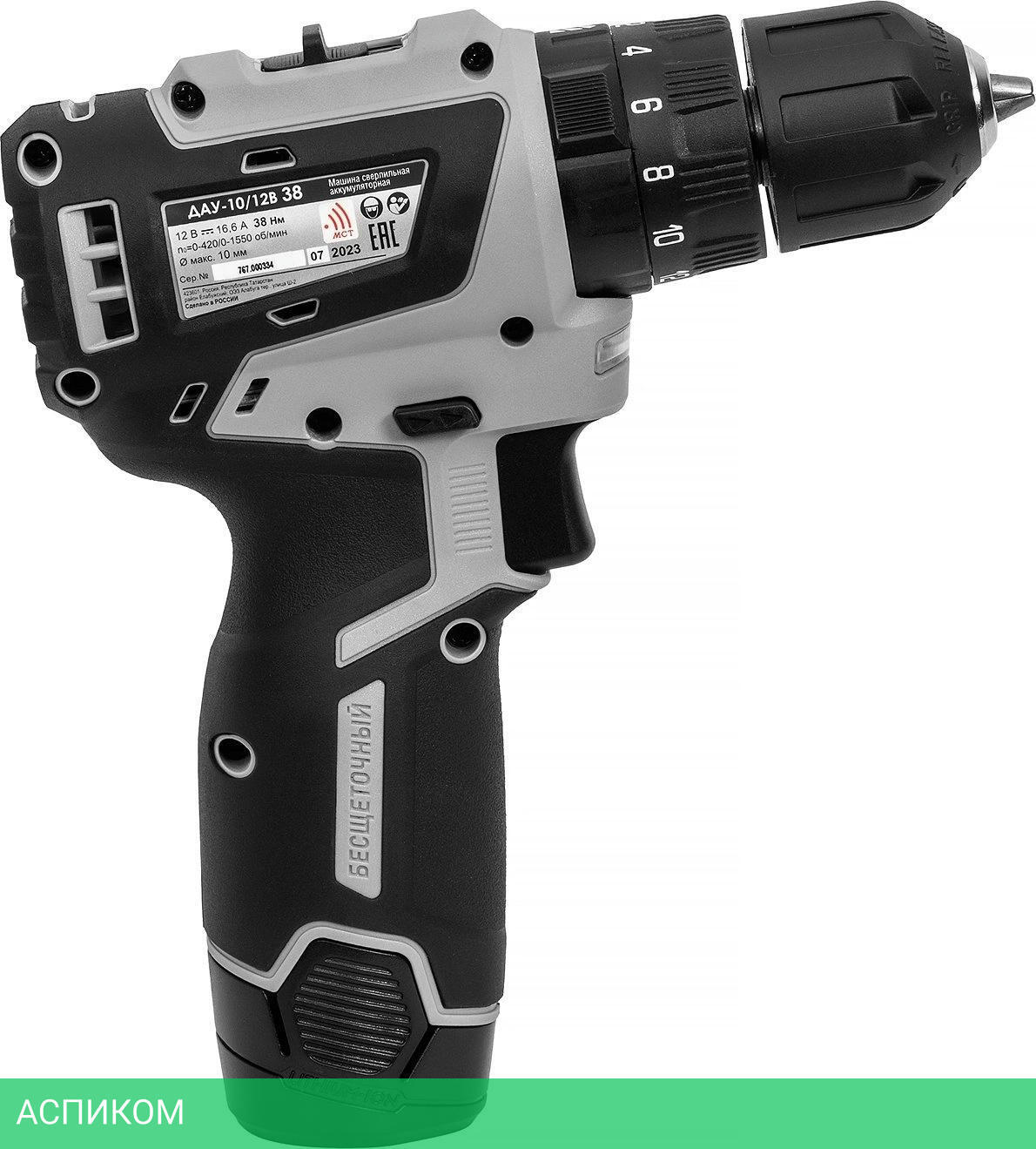 дрель-шуруповерт / аккумулятор / да / 12.0 / быстрозажимной / да / 38.0 / 10 / 1450.0 / 1.5 / Li-ion / 2.5