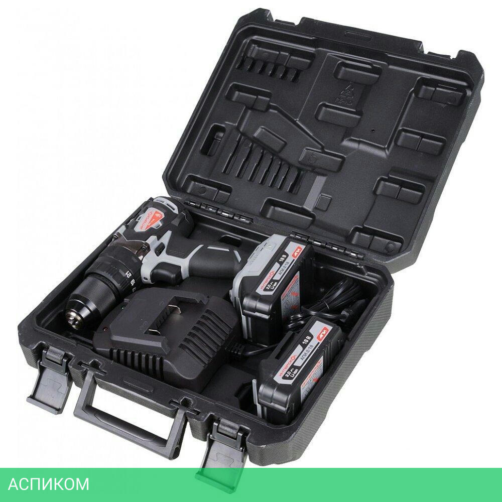 - Дрель-шуруповерт;- Скоба;- Аккумулятор - 2 шт;- Зарядное устройство;- Кейс пластмассовый;- Руководство по эксплуатации и инструкция по безопасности;- Гарантийный талон.