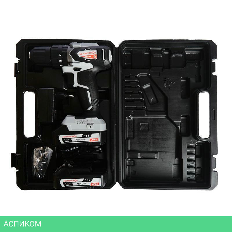- Дрель-шуруповерт;- Аккумуляторный блок АПИ - 2шт;- Часовое моноблочное зарядное устройство;- Скоба;- Руководство по эксплуатации и инструкция по безопасности;- Гарантийный талон.