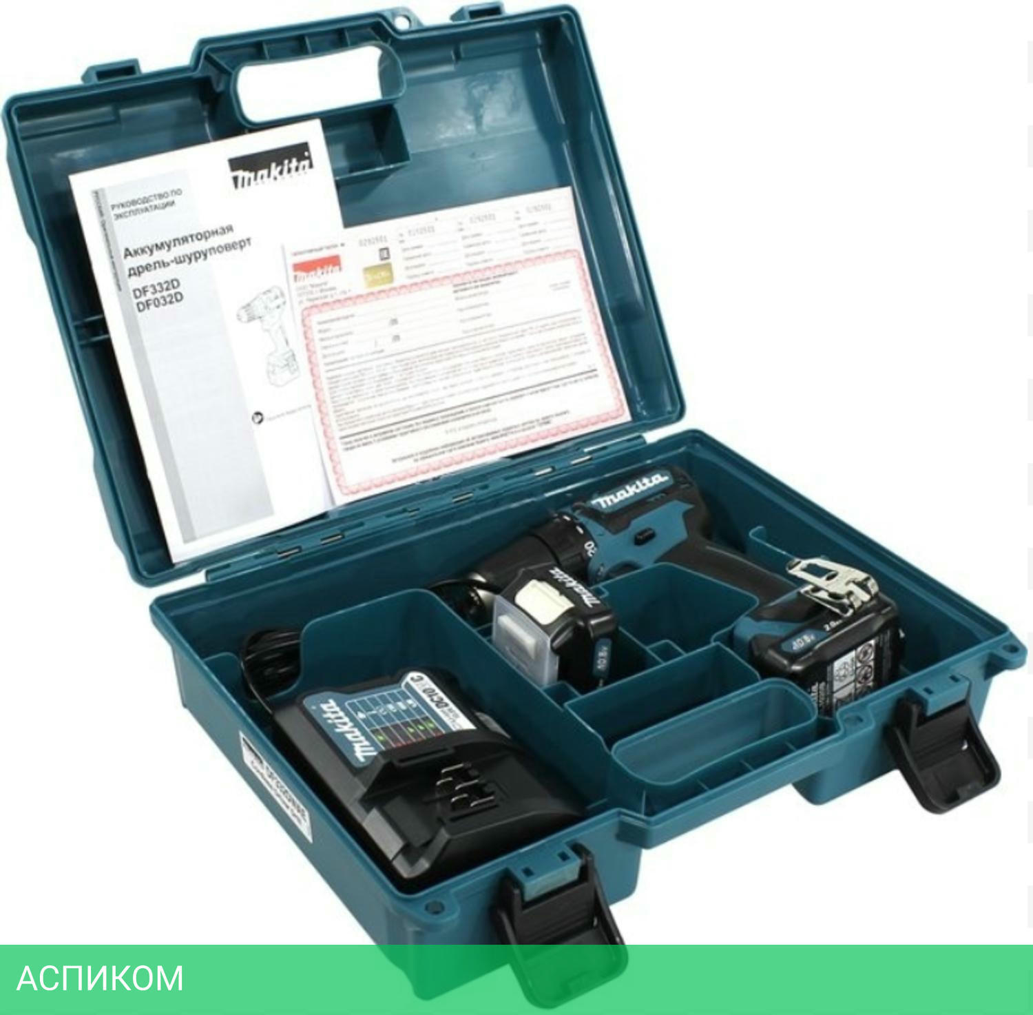 дрель, аккумулятор (2 шт.), ЗУ, кейс, инструкция