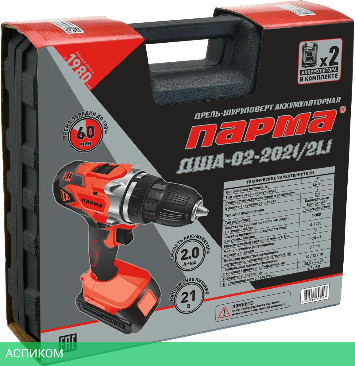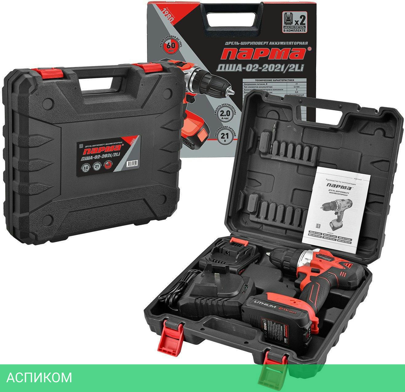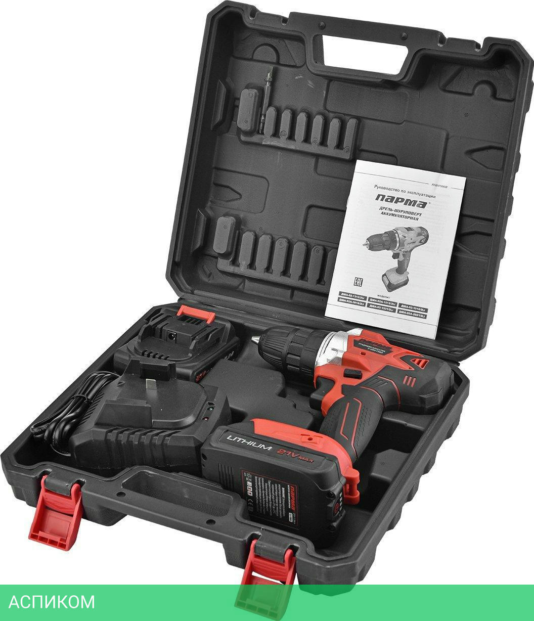 Дрель-шуруповерт, АКБ - 2 шт., ЗУ, кейс, бита.