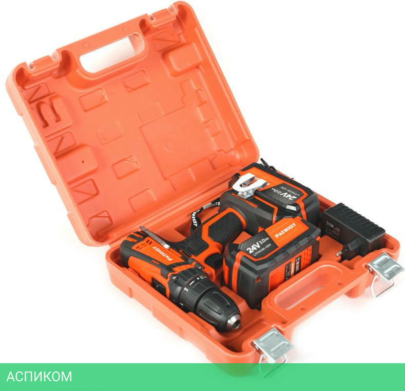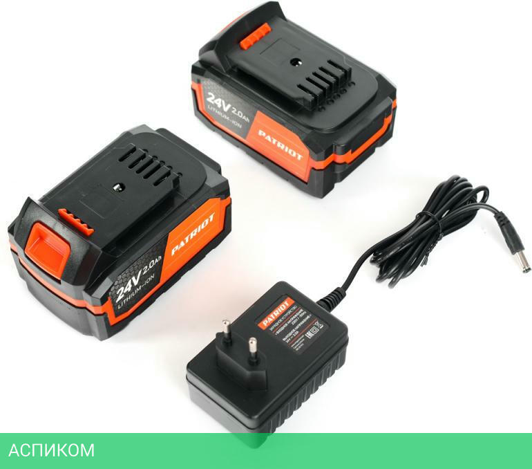 - зарядное устройство- 2 аккумулятора (24В/2А)- 1 бита- металлическая клипса- документацияПоставляется в пластиковом кейсе
