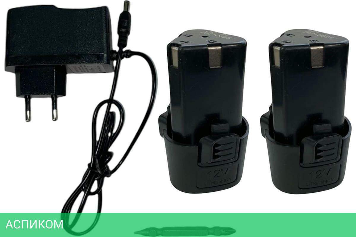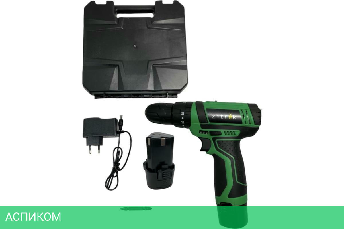 Дрель-шуруповерт - 1 штЗарядное устройство - 1 штАккумулятор - 2 штБита - 1 штИнструкцияКейс