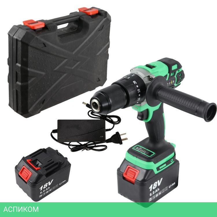 - Дрель-шуруповерт;- 2 аккумулятора;- Зарядное устройство;- Кейс.
