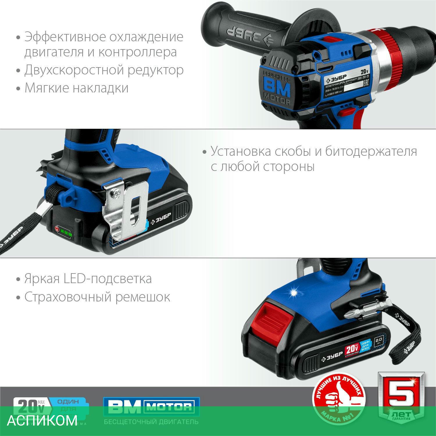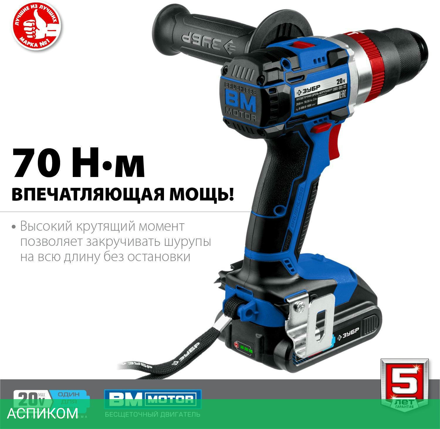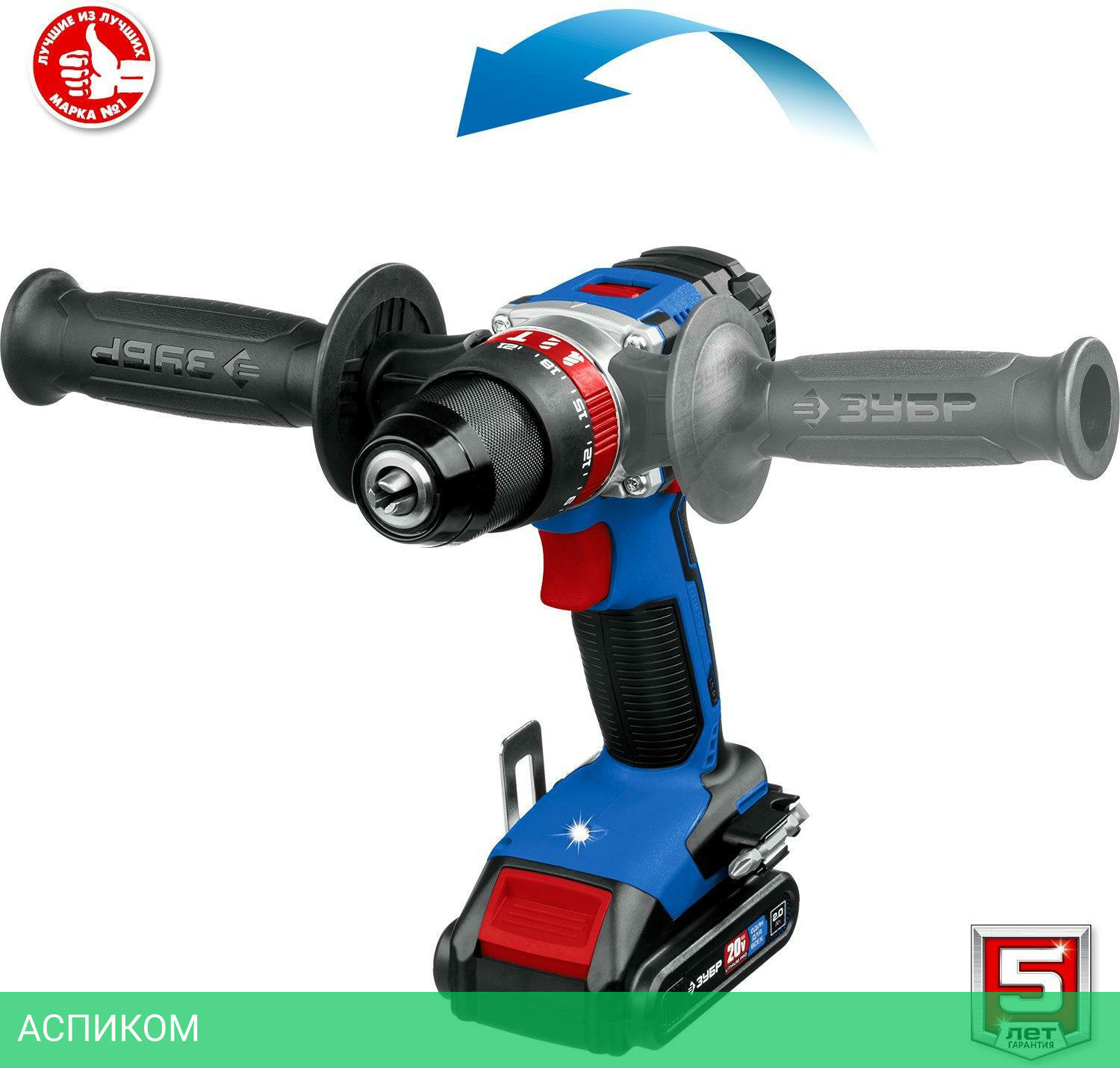 Аккумуляторная дрель шуруповерт ЗУБР DBS-201-22, предназначена для сверления отверстий в различных материалах (при установке сверла), а также для вкручивания/выкручивания шурупов, саморезов и винтов (при установке соответствующих бит).