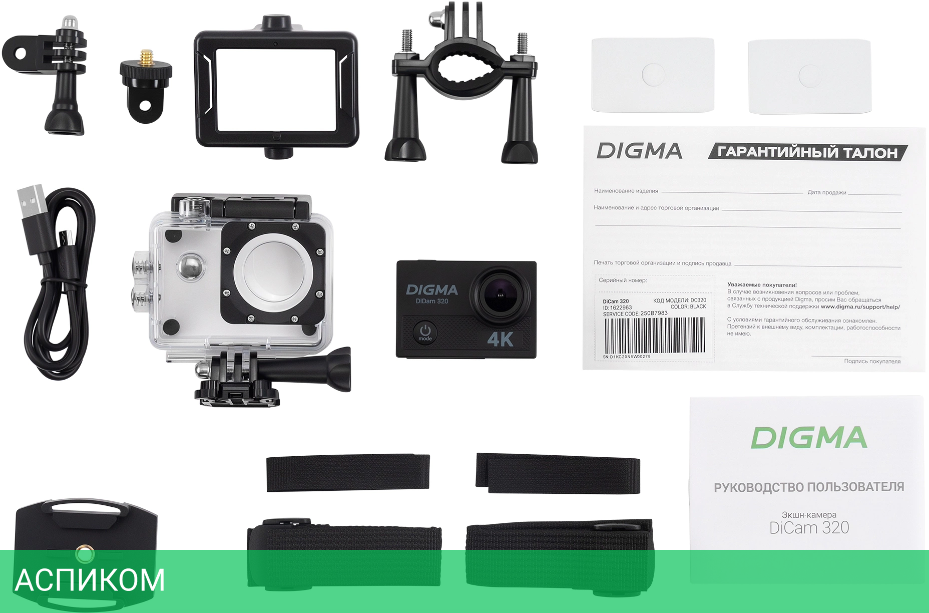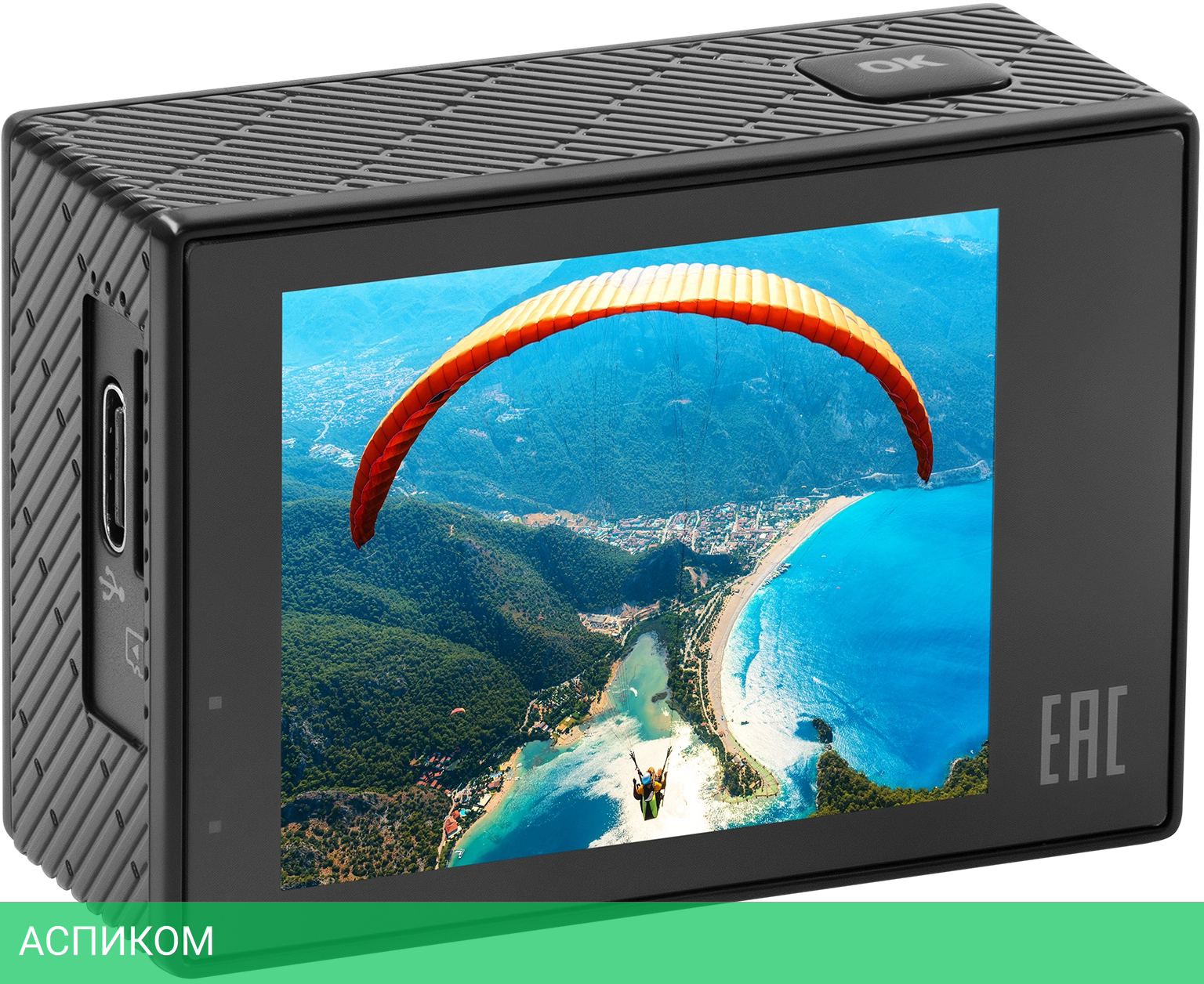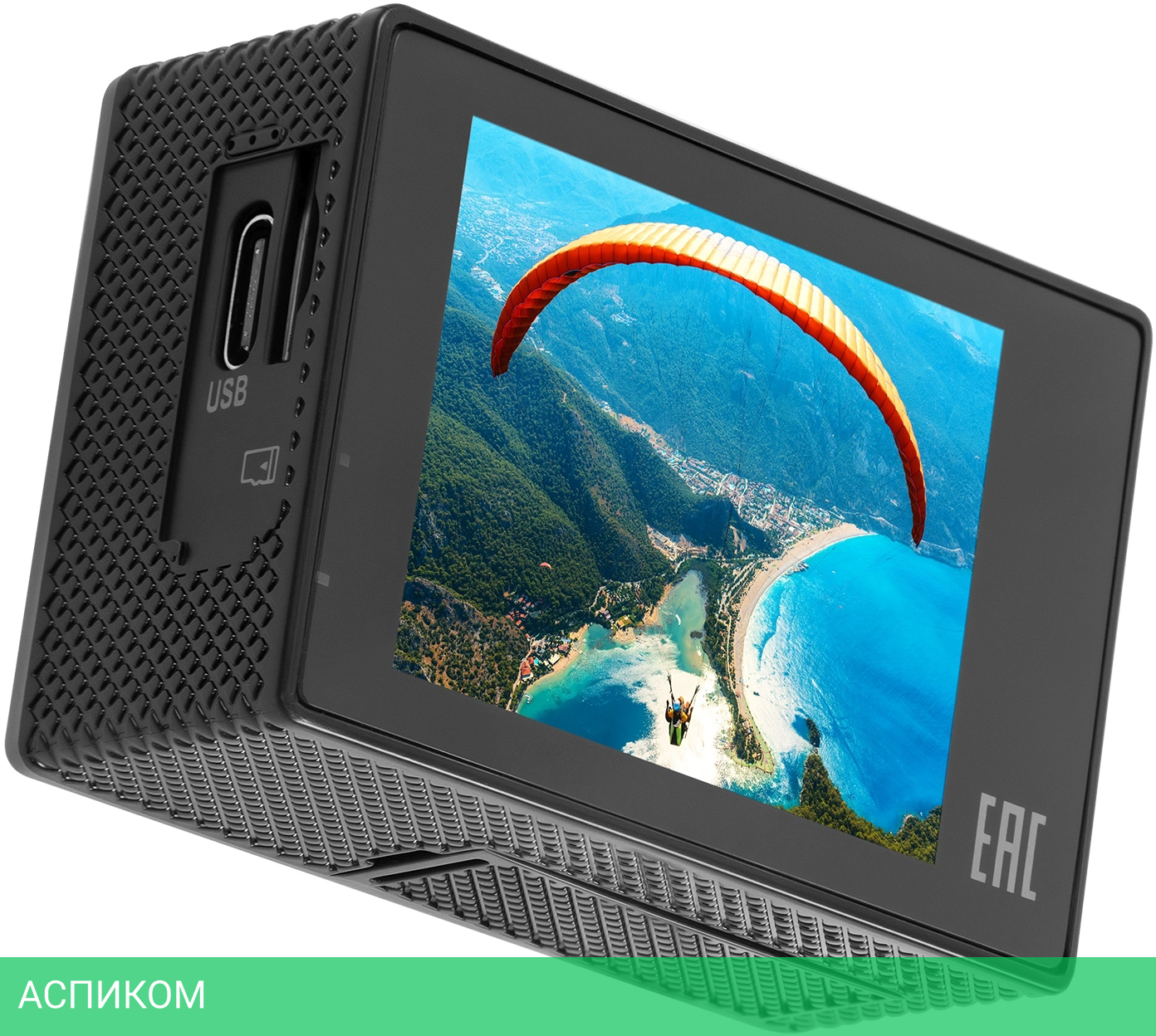 кабель (USB), аккумулятор, документация, водонепроницаемый кейс, крепление (на шлем, на штатив)