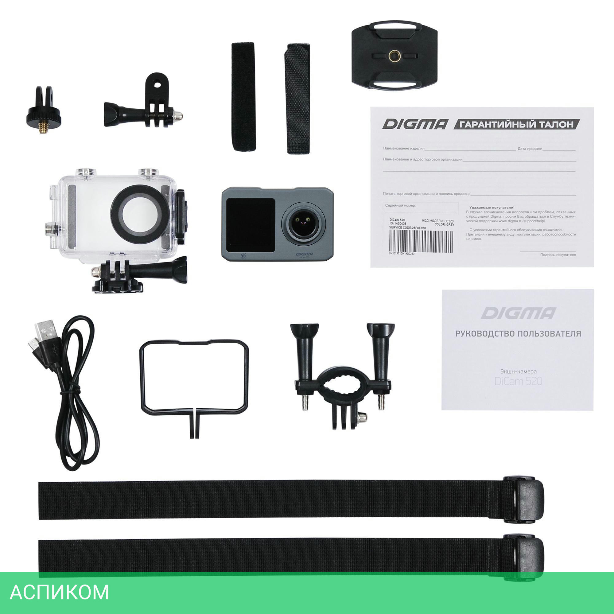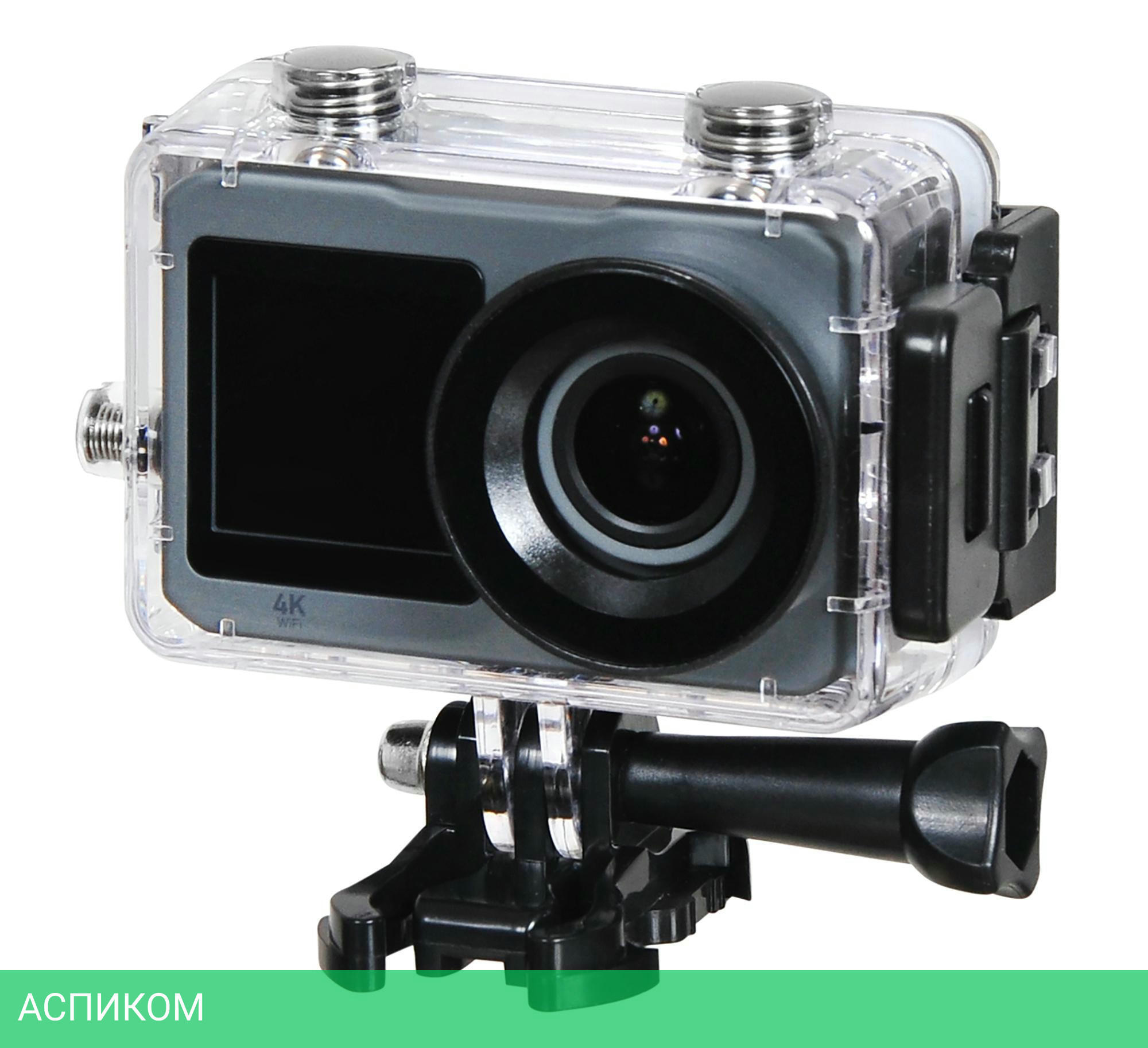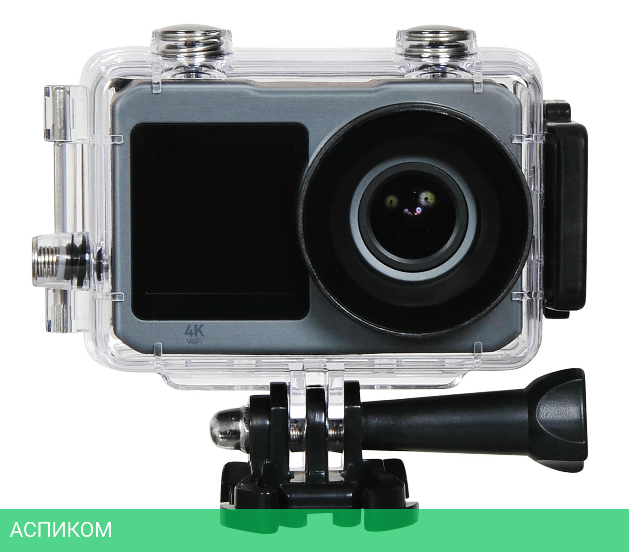 - съемный аккумулятор- водонепроницаемый бокс- основное крепление- велосипедное крепление- крепление на шлем- крепление для плоской поверхности- адаптер и неподвижное основание- два кронштейна-адаптера- повязка-бандаж- рамка- кабель для зарядки- документация