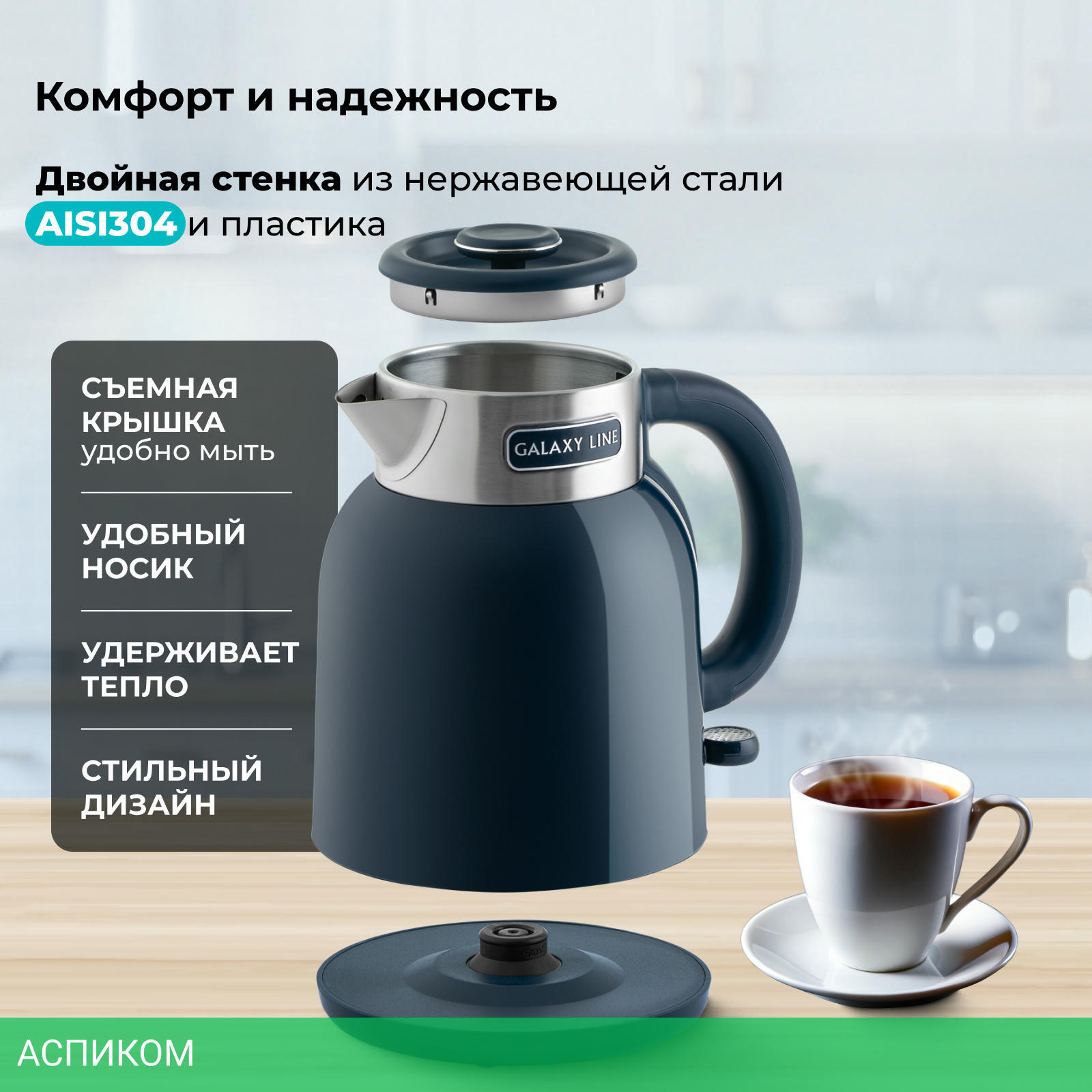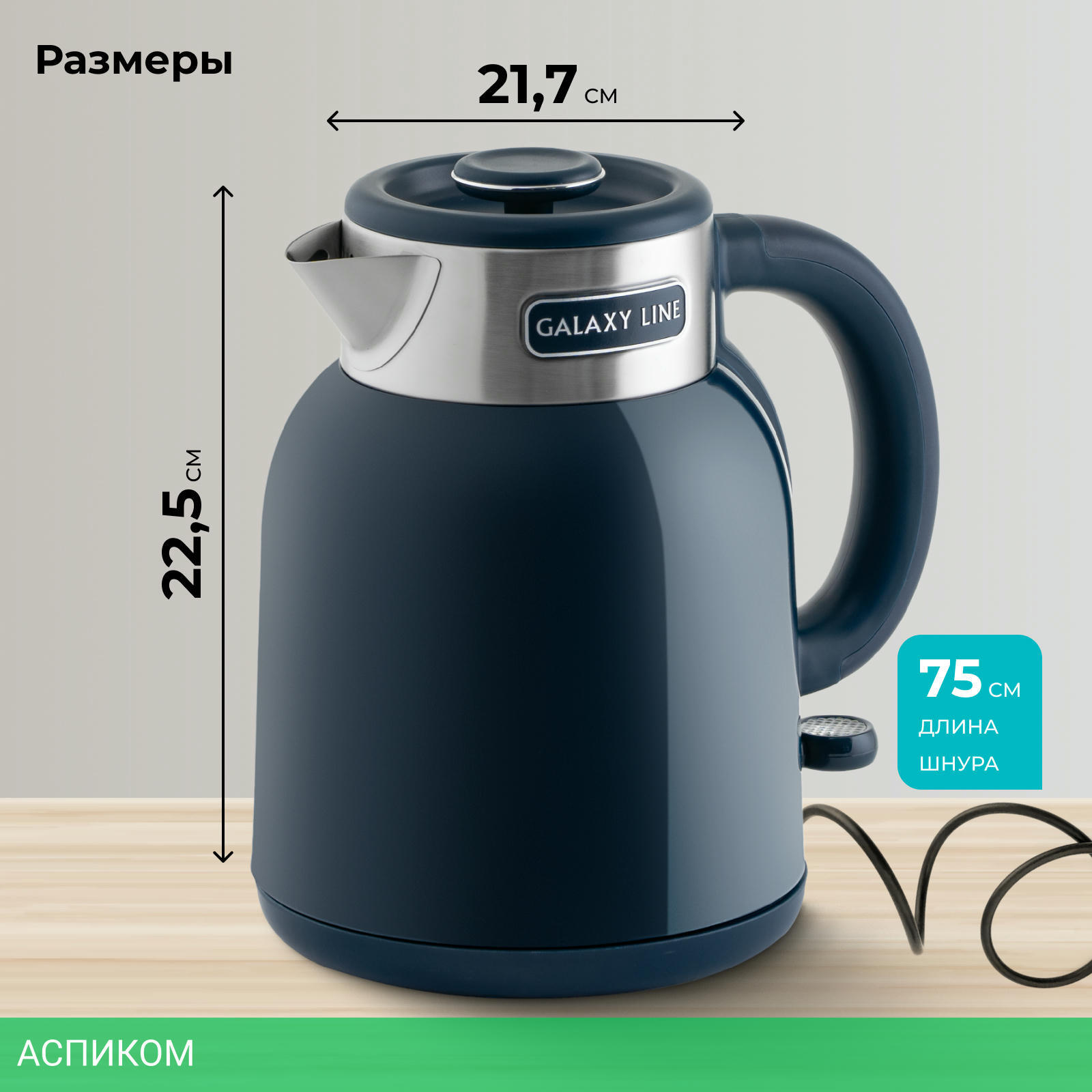 электрочайник / 1800.0 / 1.5 / механическое / синий / нет / нержавеющая сталь; пластик