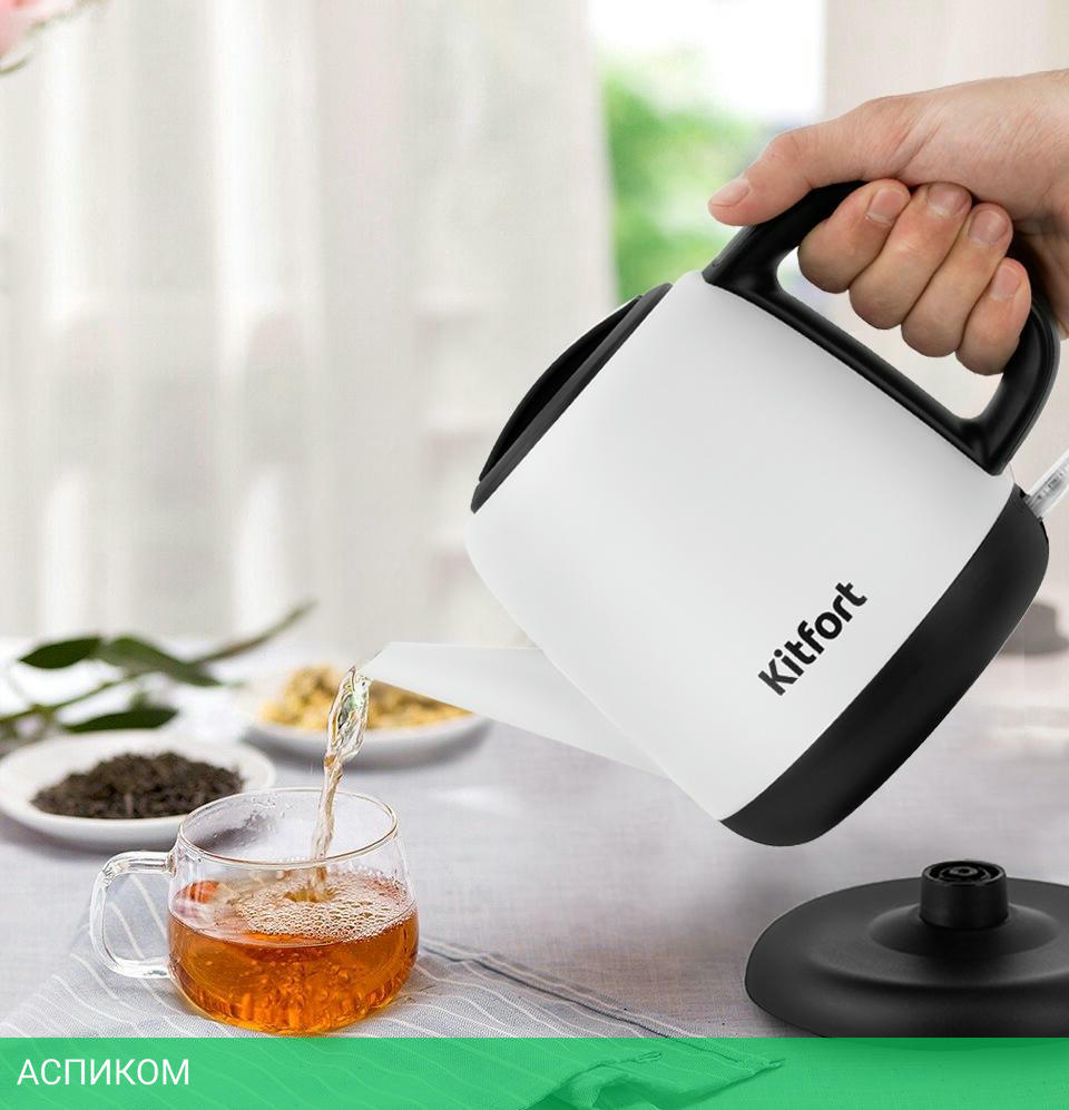 электрочайник / 1630.0 / 1.0 / механическое / нет / металл; пластик / белый; черный