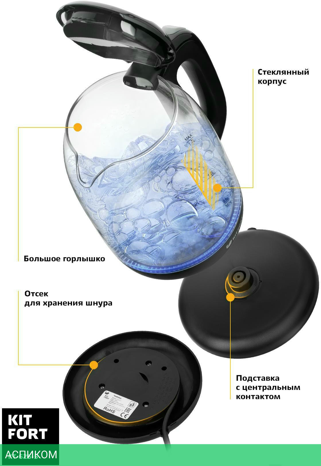 электрочайник / серый; черный / 2200.0 / 1.7 / механическое / да / стекло