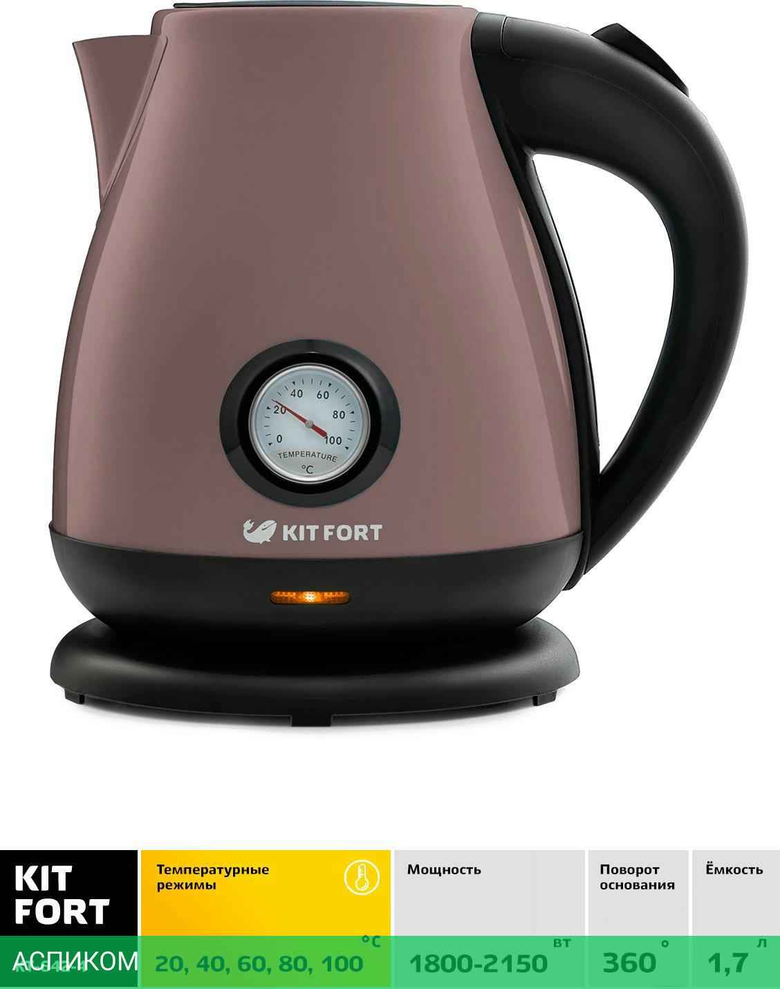 электрочайник / лиловый / 2200.0 / 1.7 / механическое / нет / металл; пластик