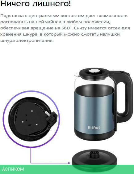 электрочайник / синий / 1700.0 / 1.8 / механическое / нет