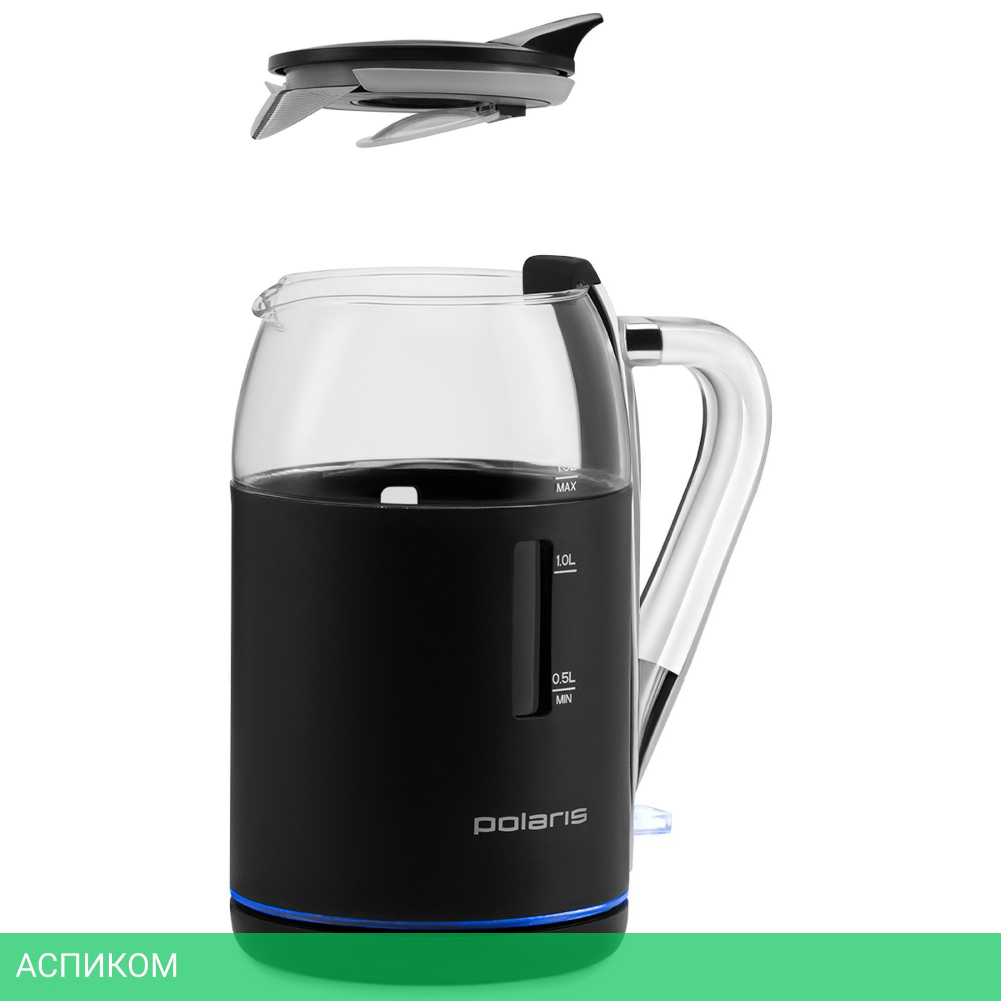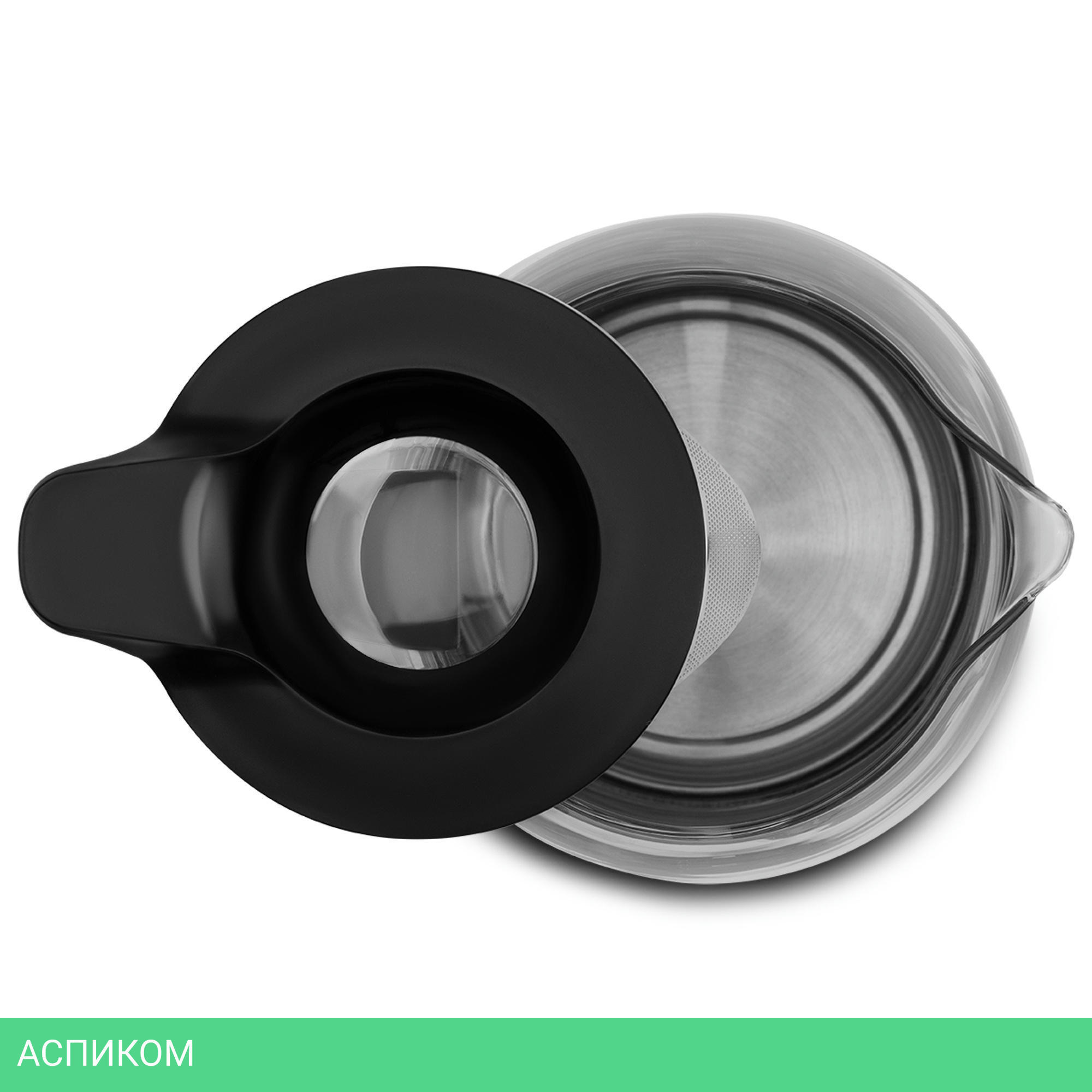 электрочайник / 2200.0 / 1.5 / механическое / черный / да / пластик; стекло