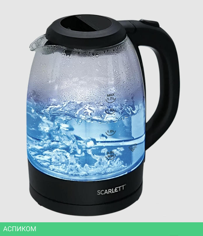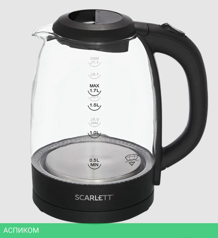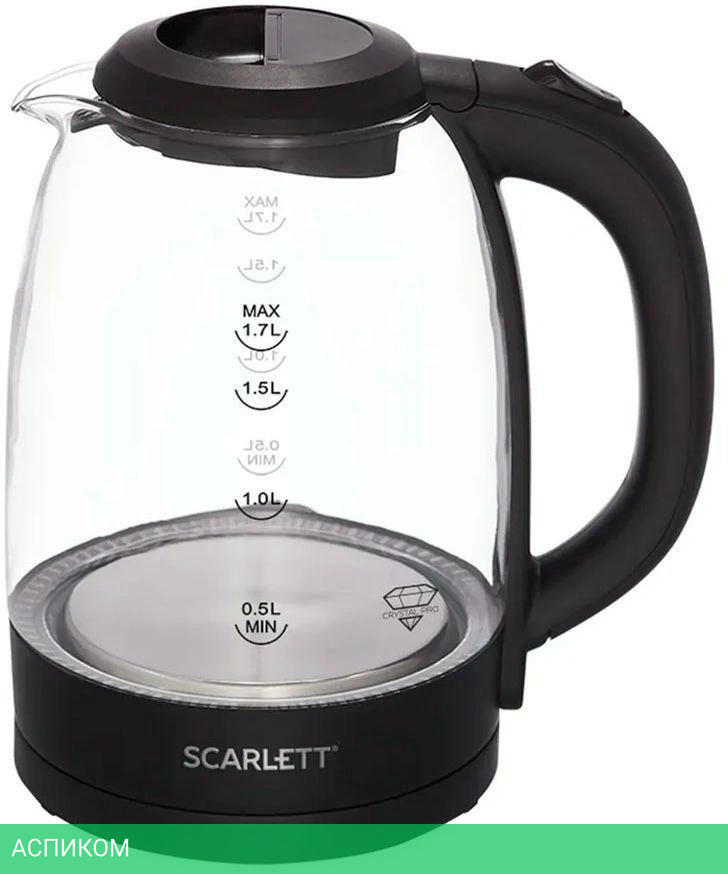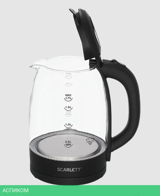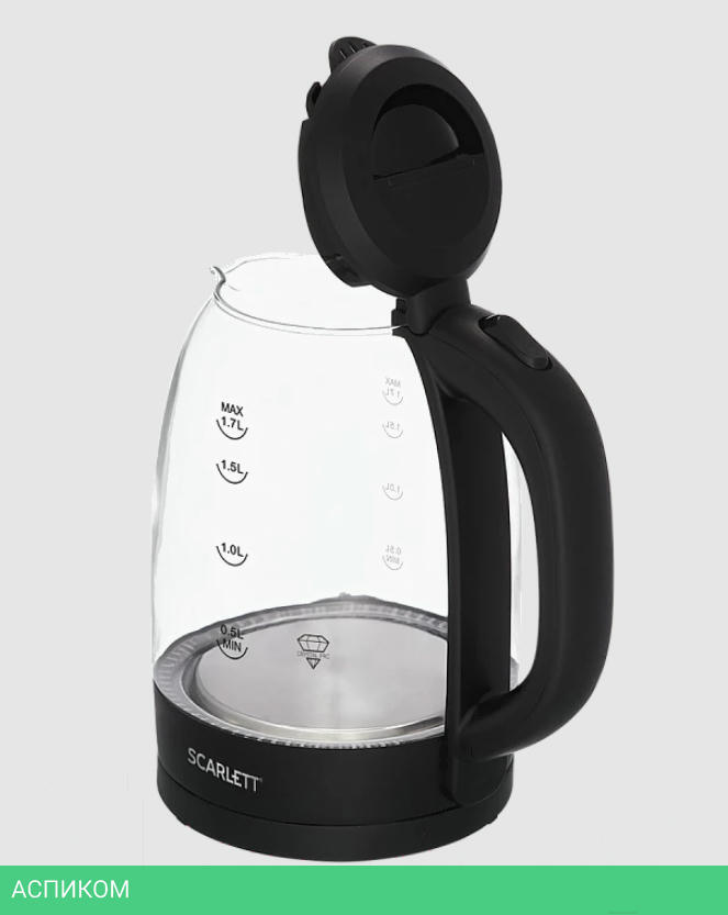 электрочайник / черный / 2200.0 / 1.7 / механическое / да / пластик; стекло