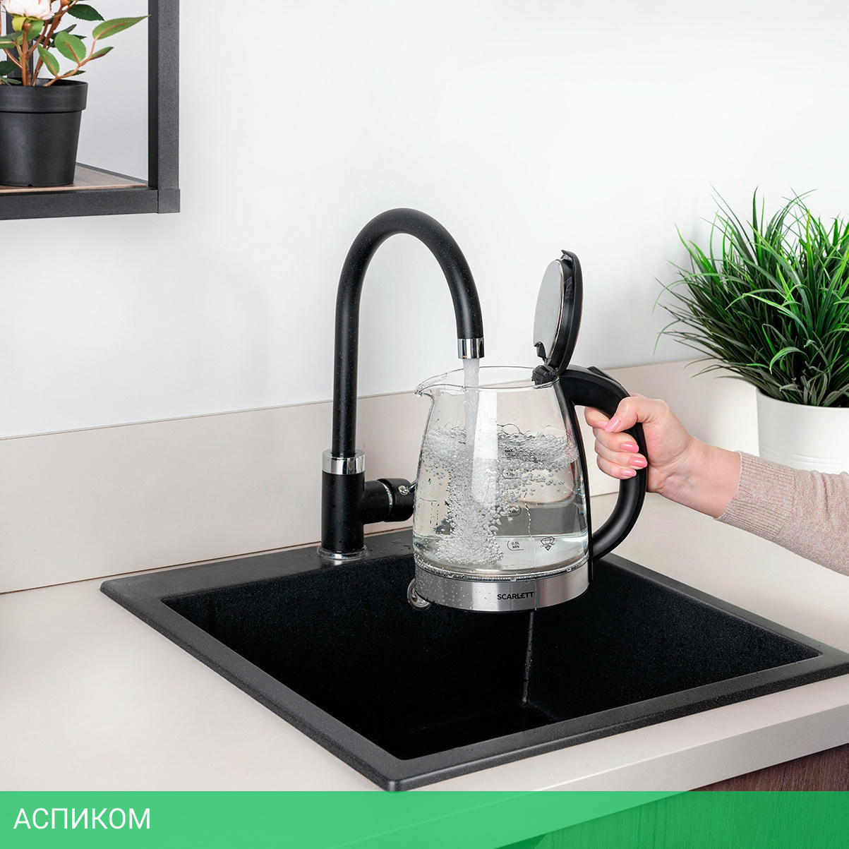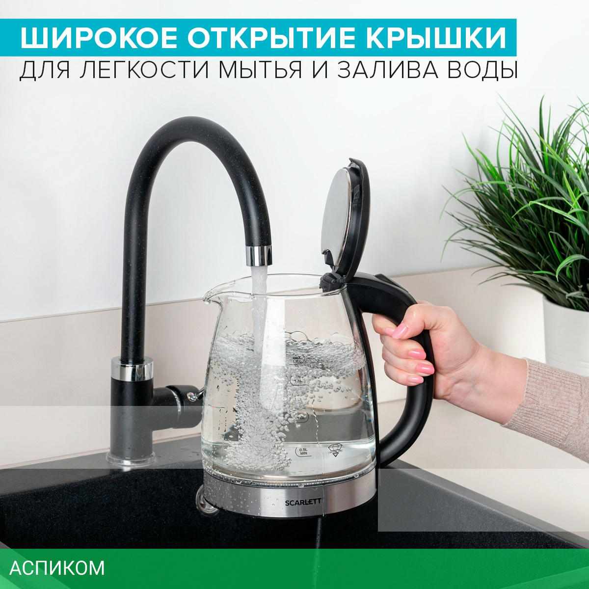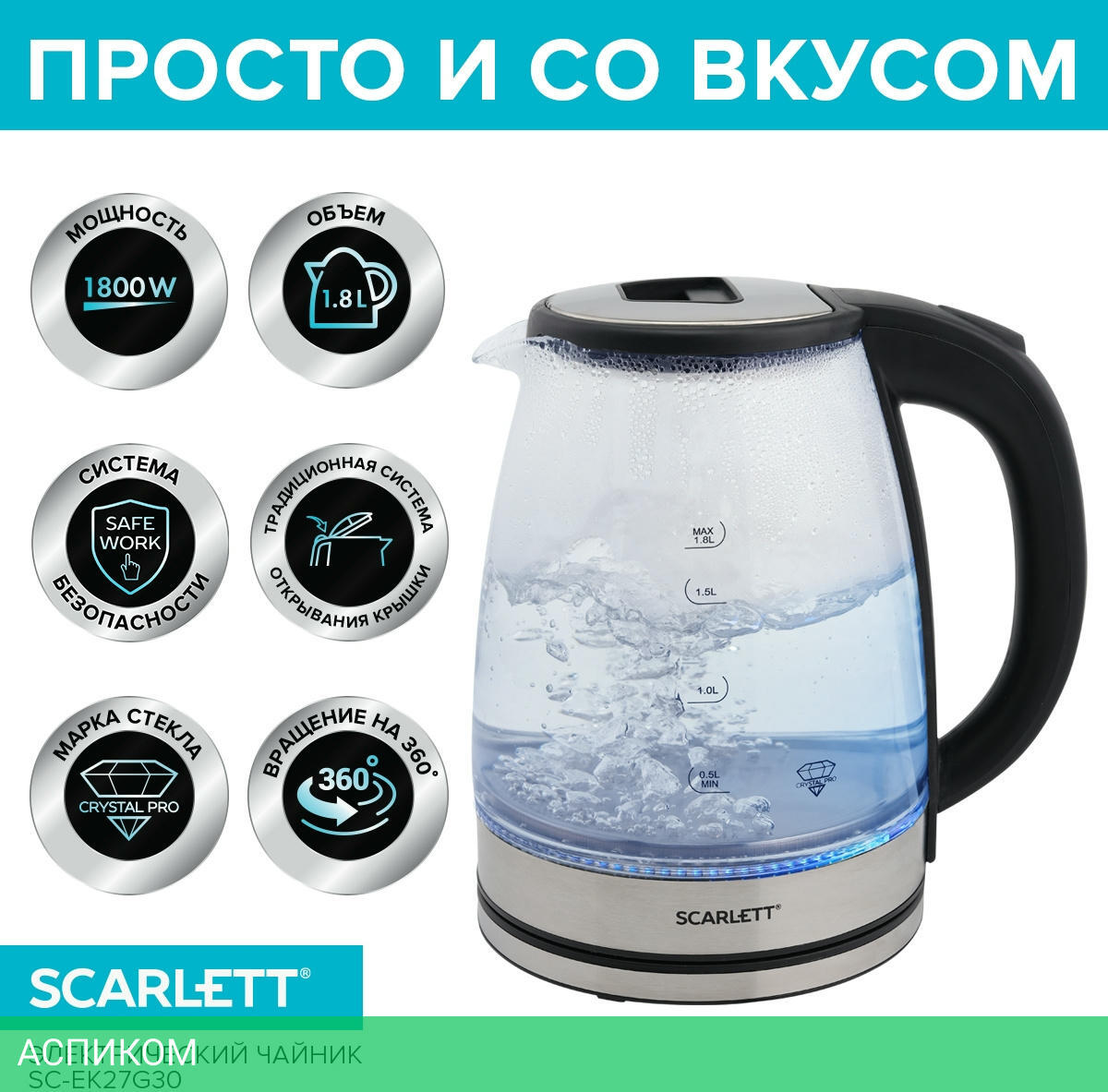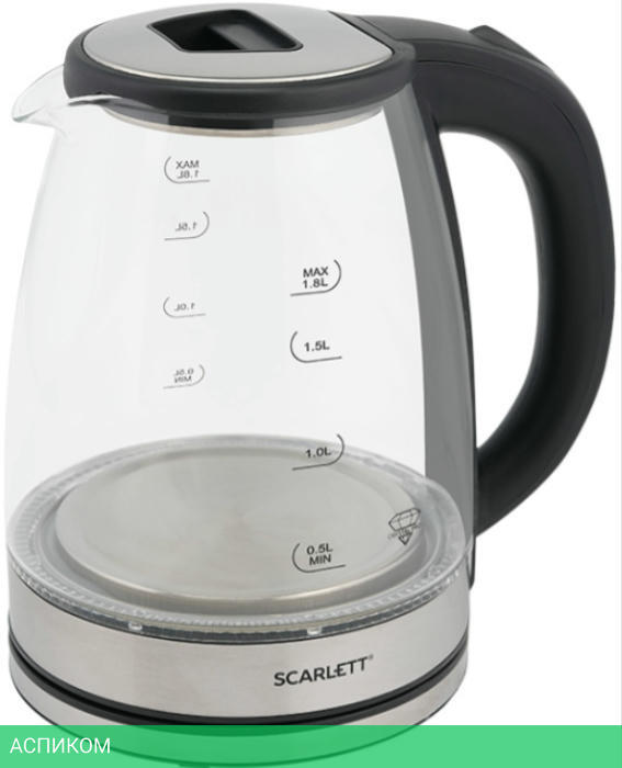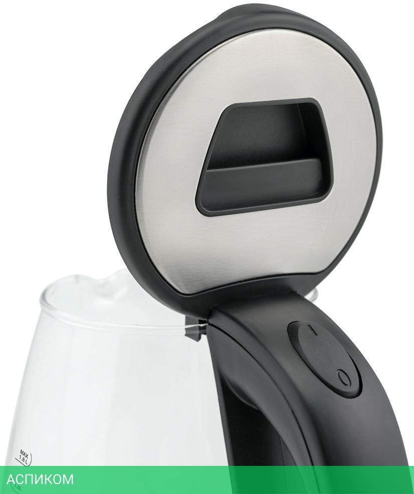 электрочайник / черный; нержавеющая сталь / 1800.0 / 1.8 / механическое / да / пластик; стекло