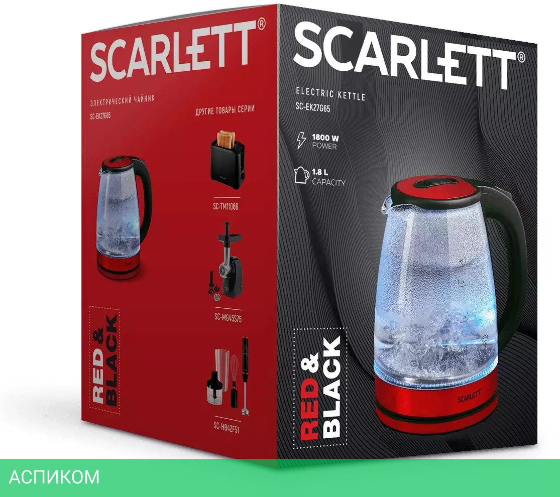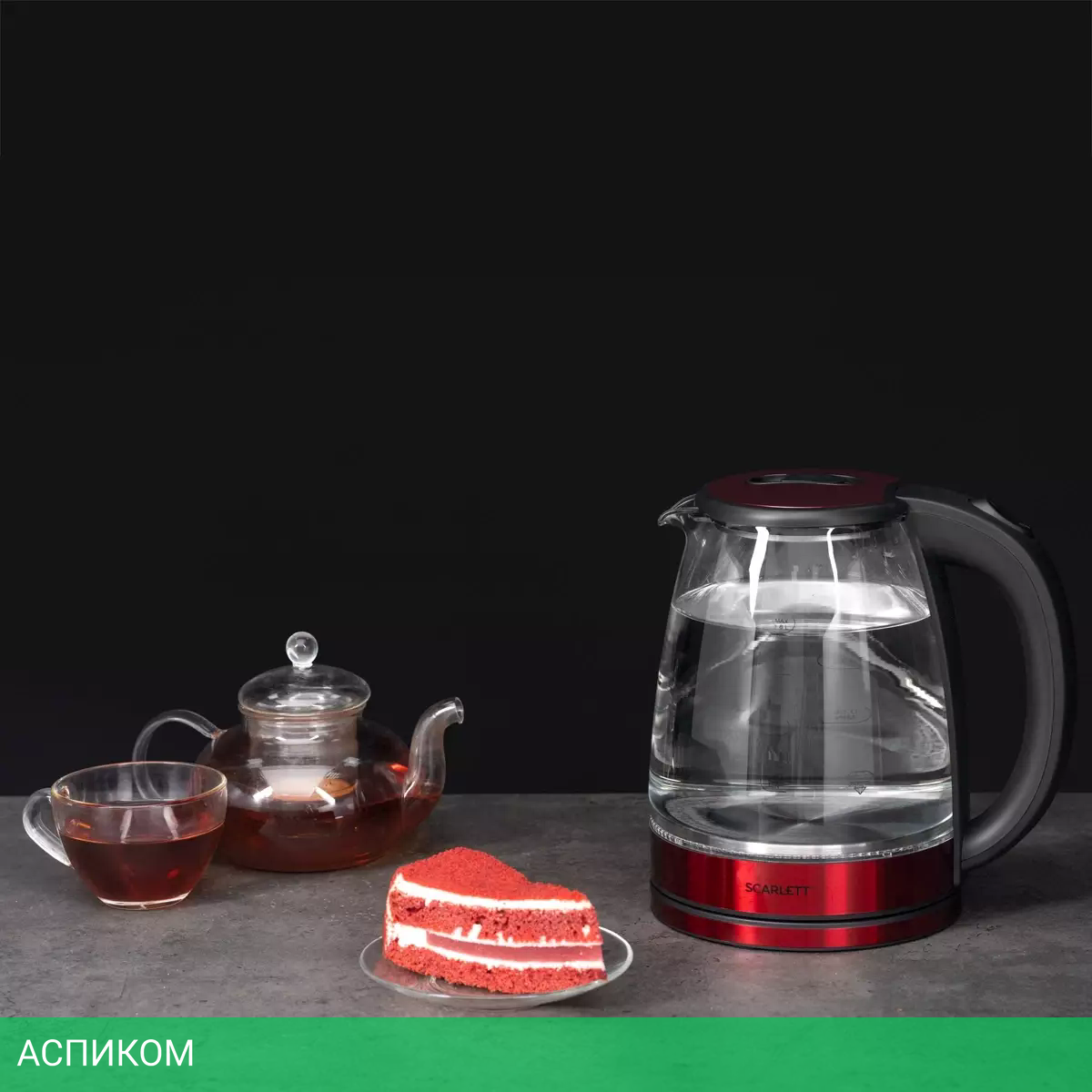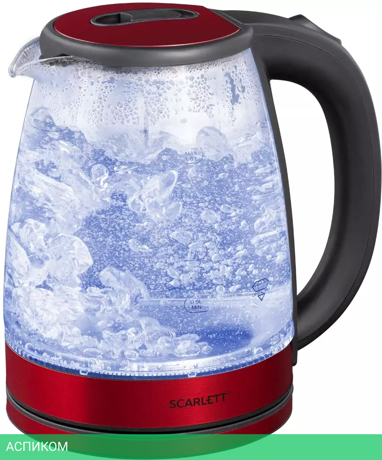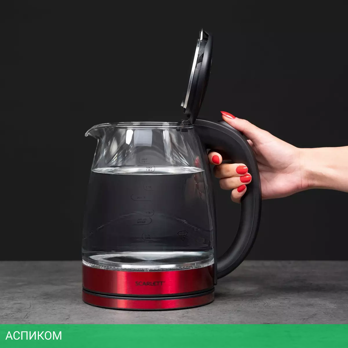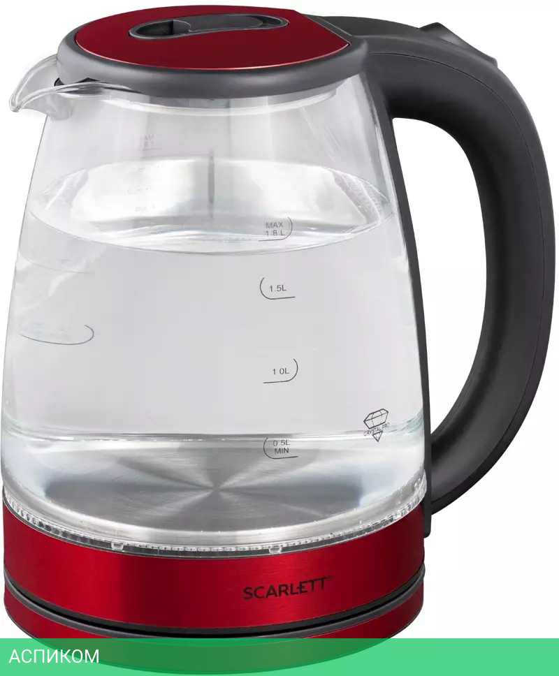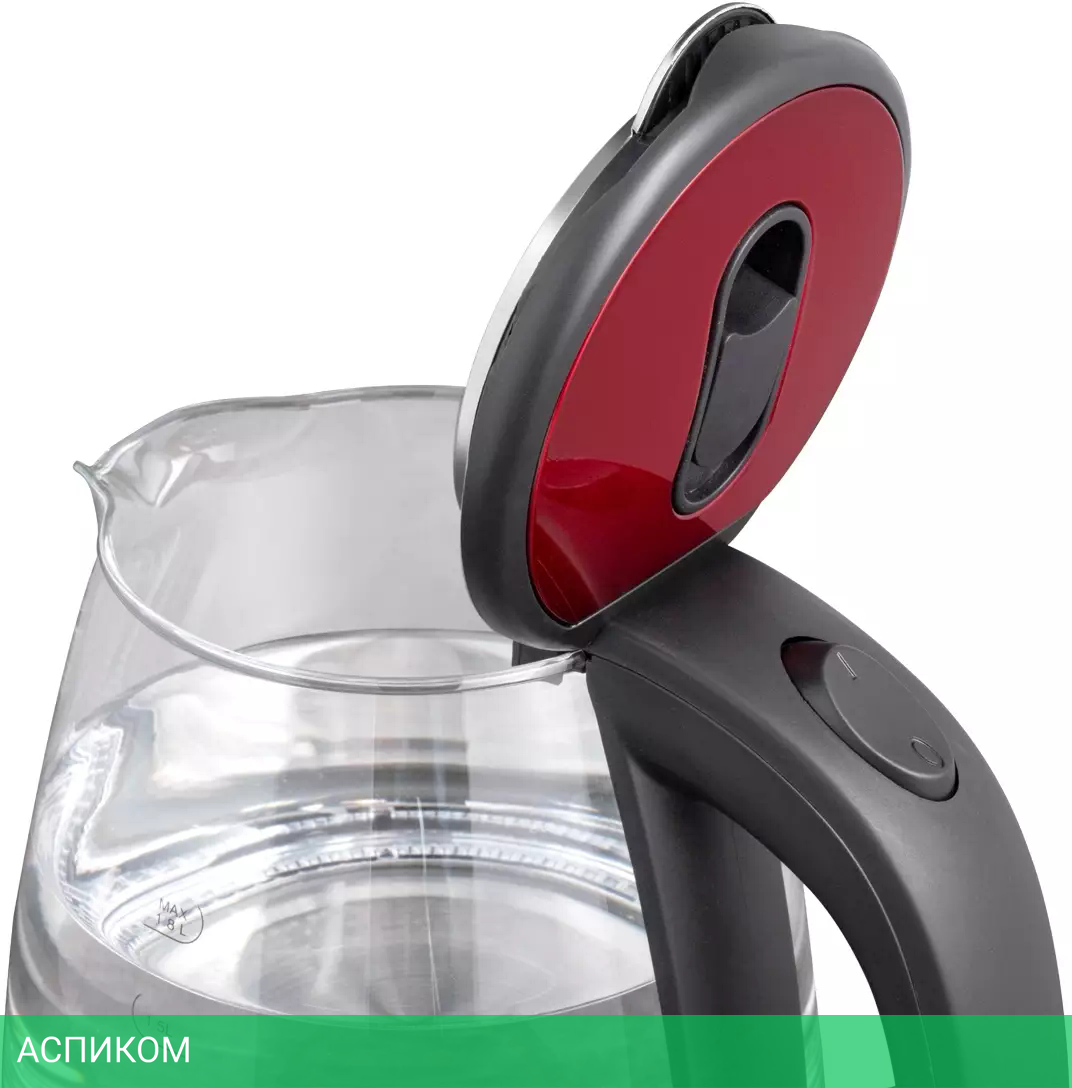 электрочайник / красный; прозрачный / 1800.0 / 1.8 / механическое / да / металл; пластик; стекло