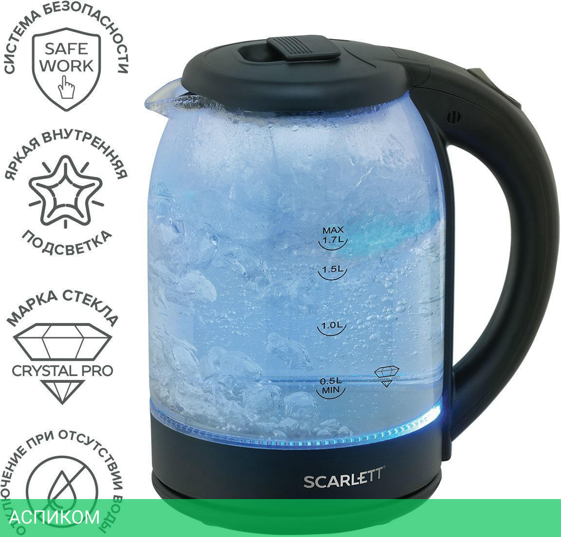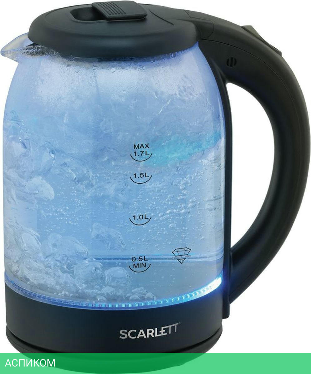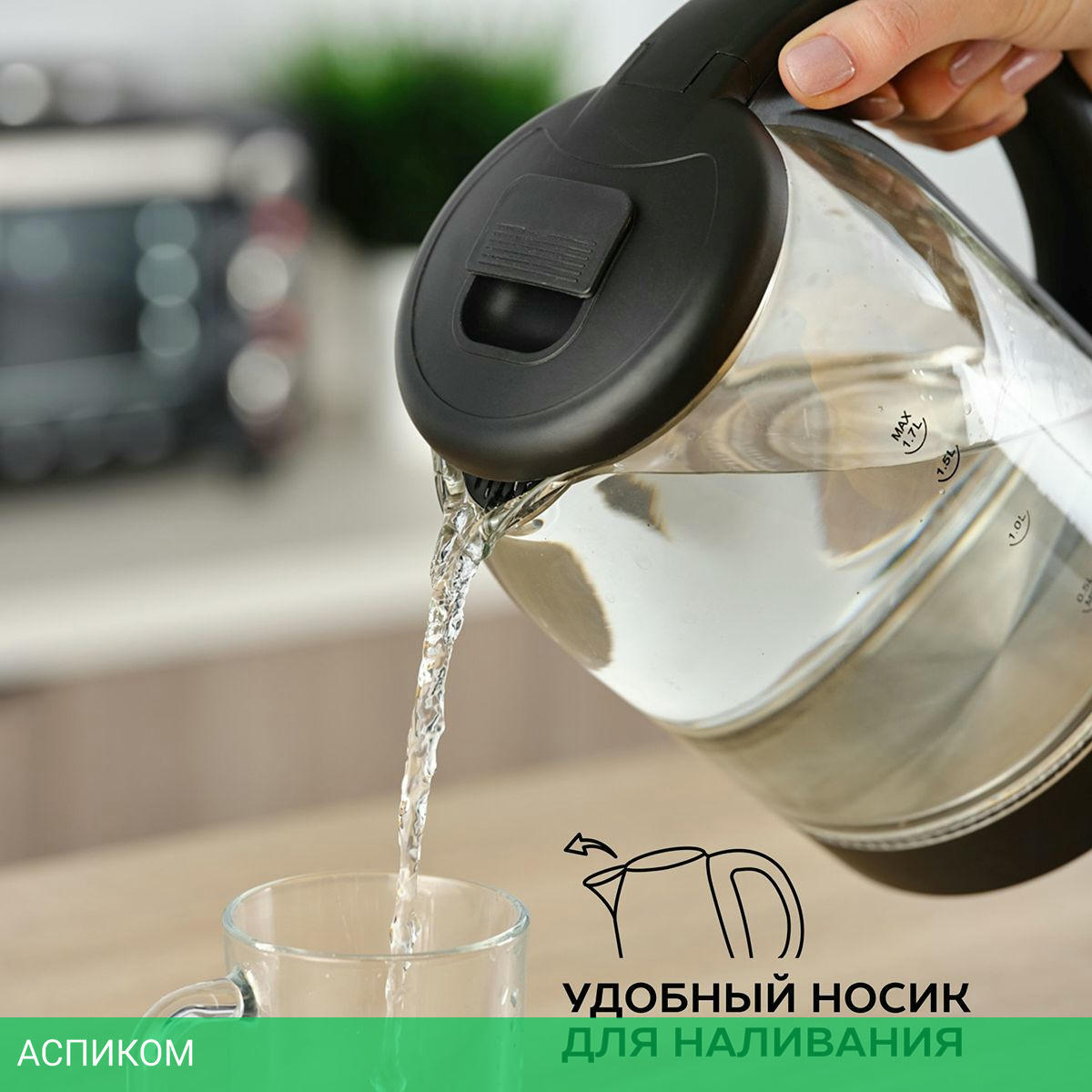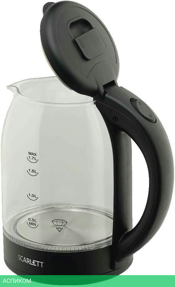 электрочайник / черный / 1800.0 / 1.7 / механическое / да / пластик; стекло