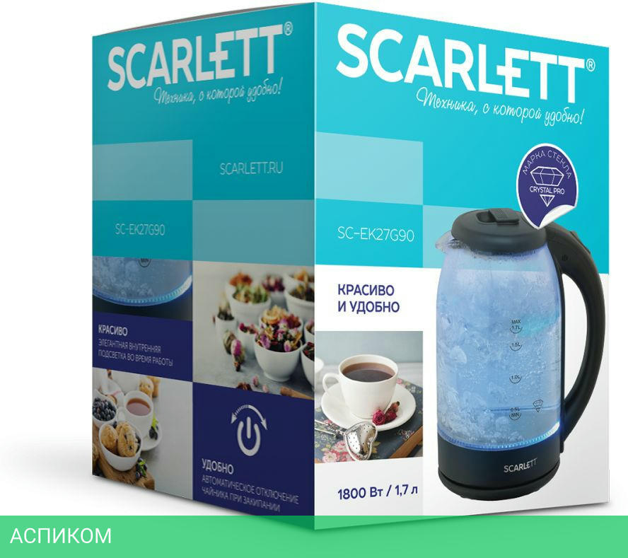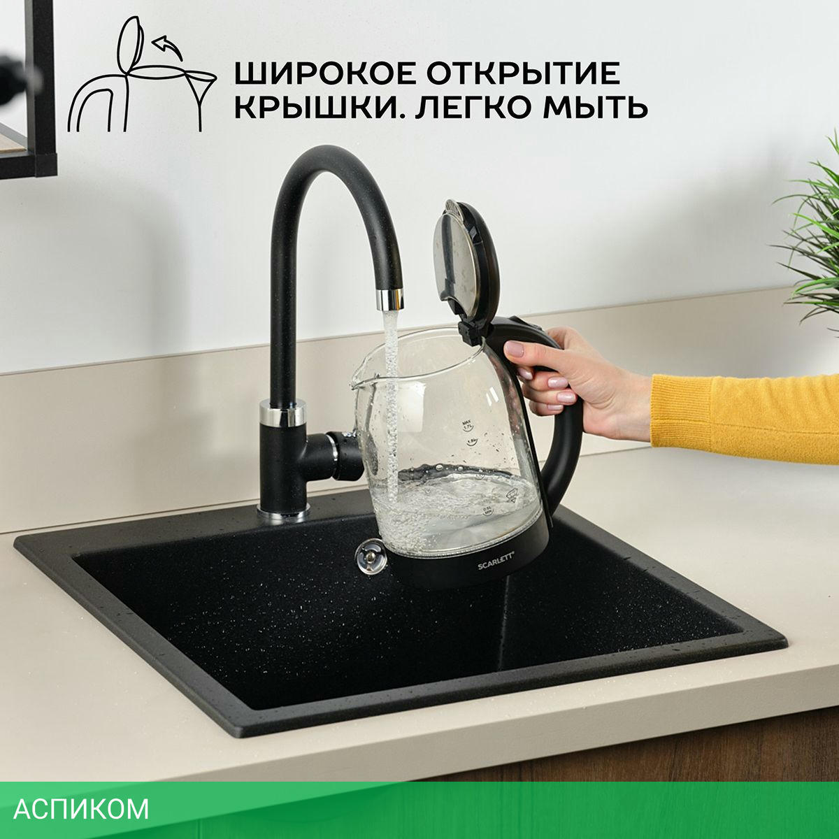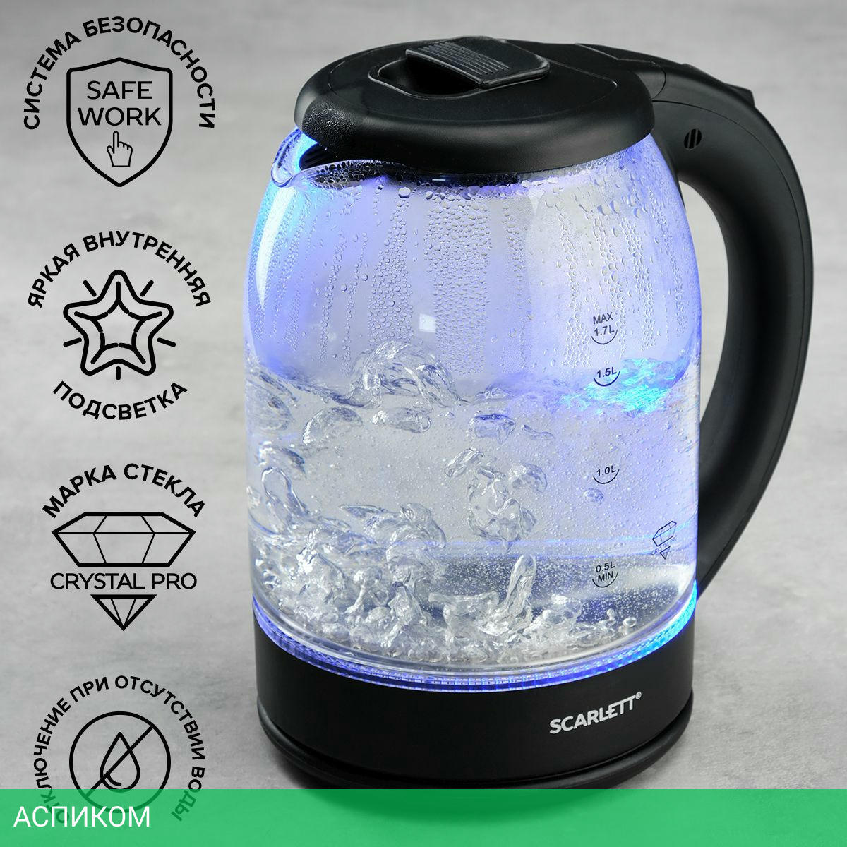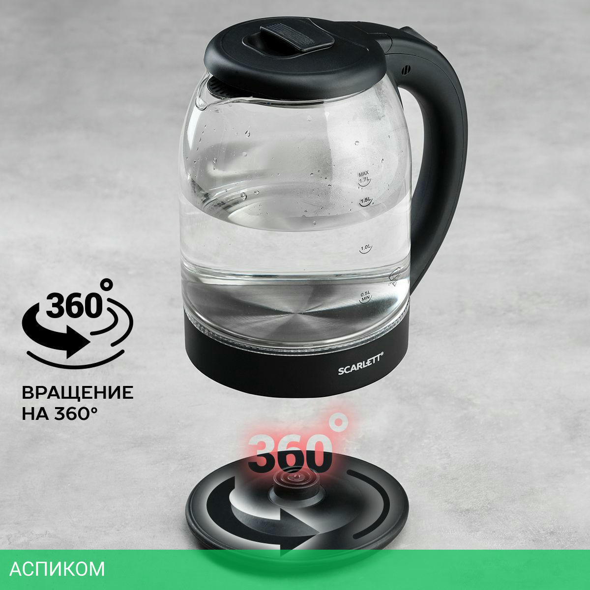 электрочайник / черный / 1800.0 / 1.7 / механическое / да / пластик; стекло