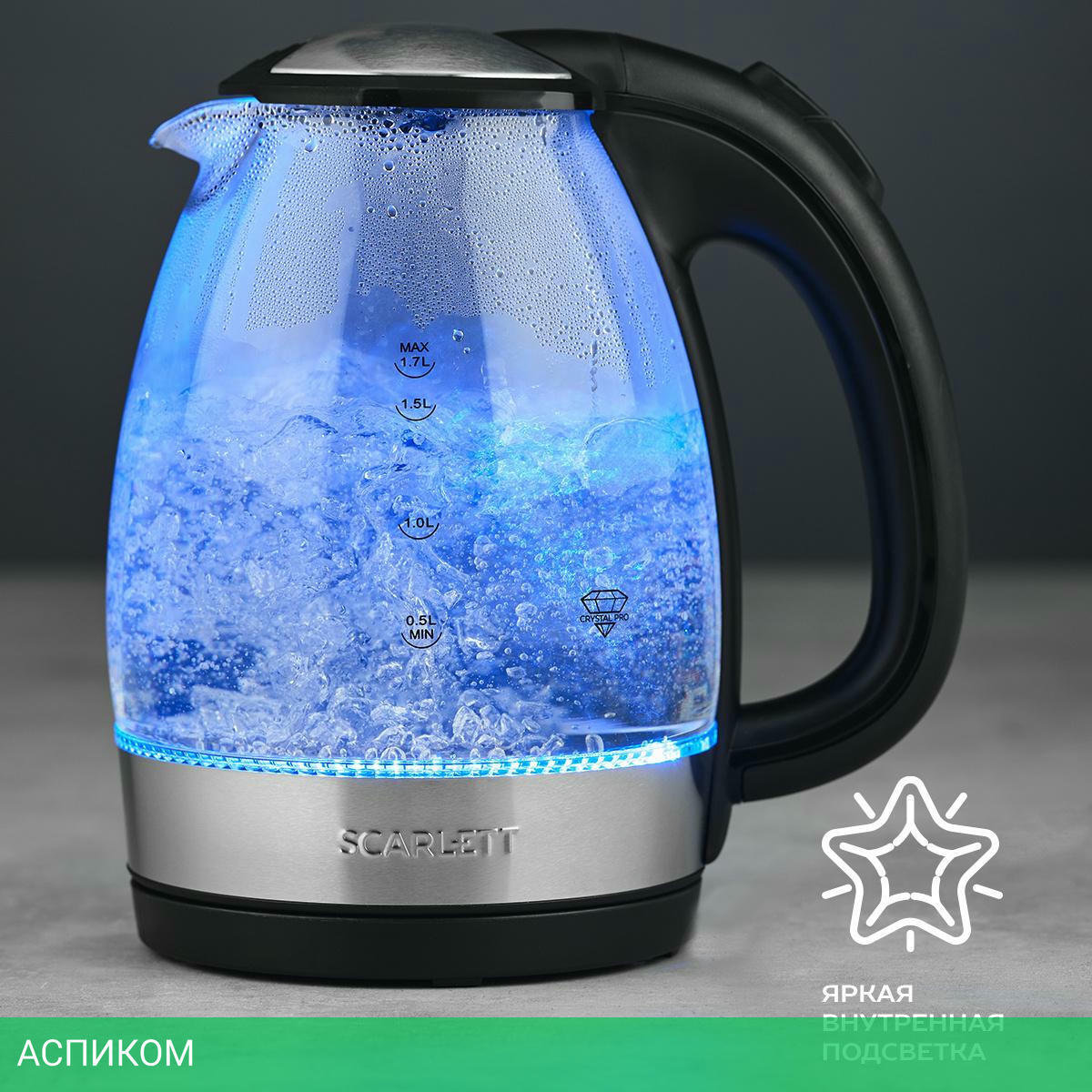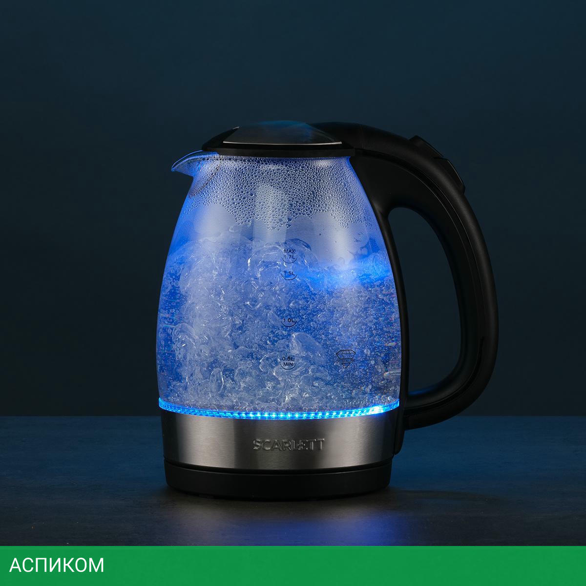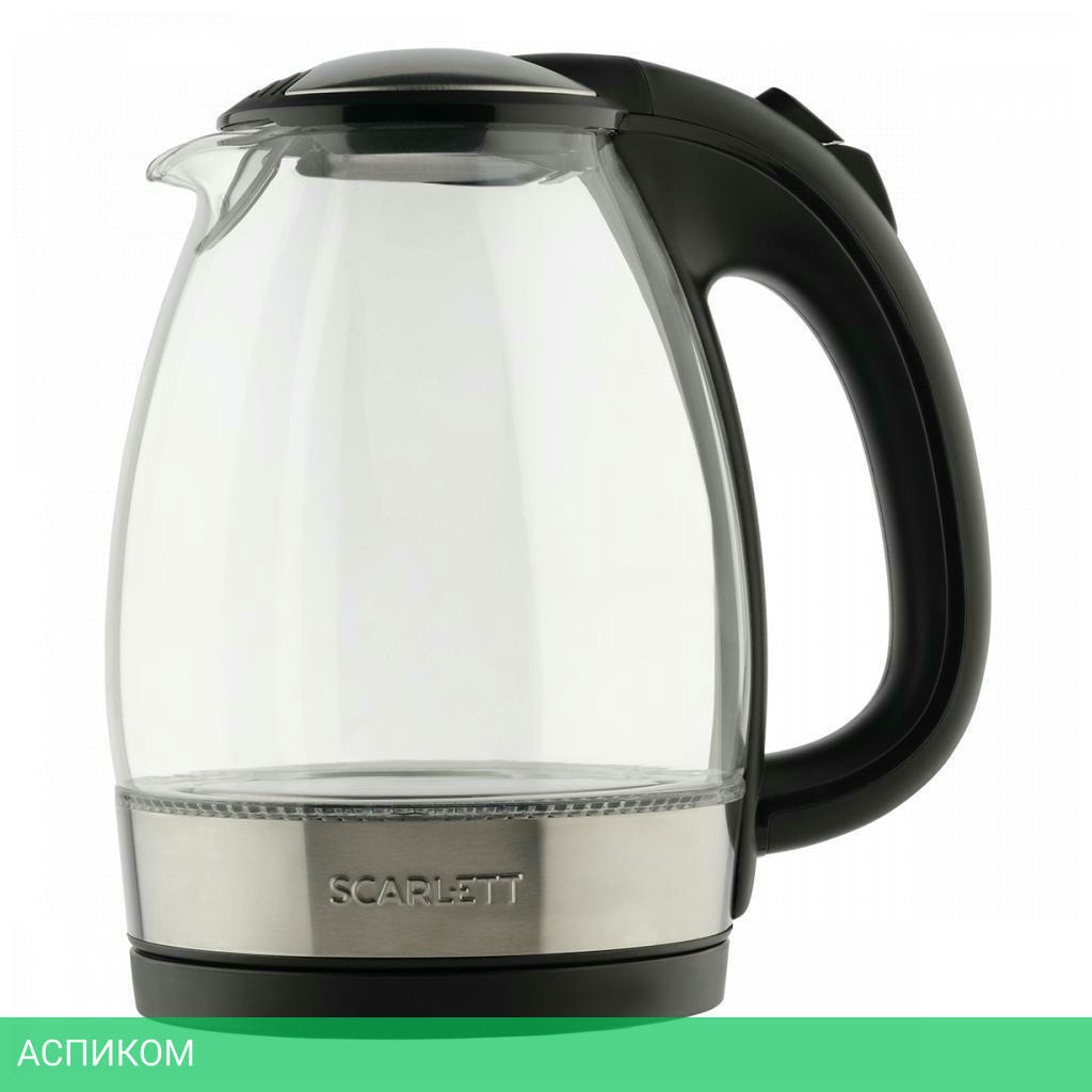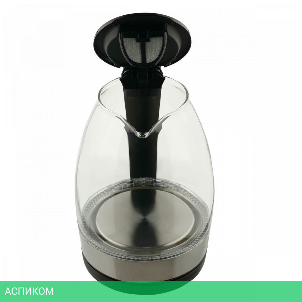 электрочайник / 2200.0 / 1.7 / механическое / черный; нержавеющая сталь / да / стекло
