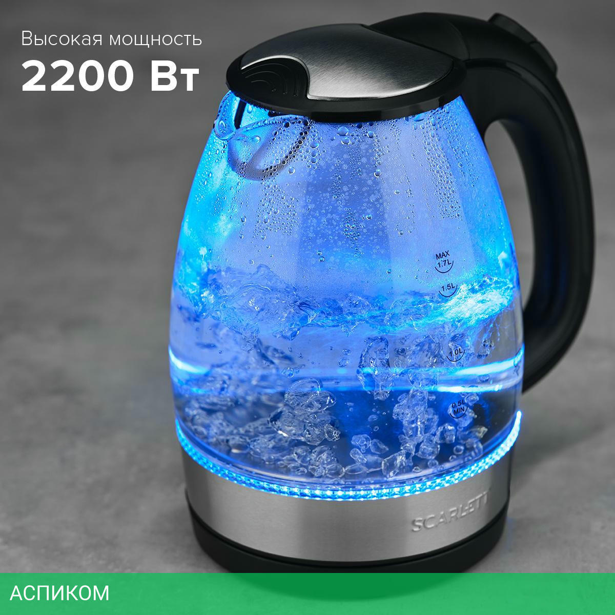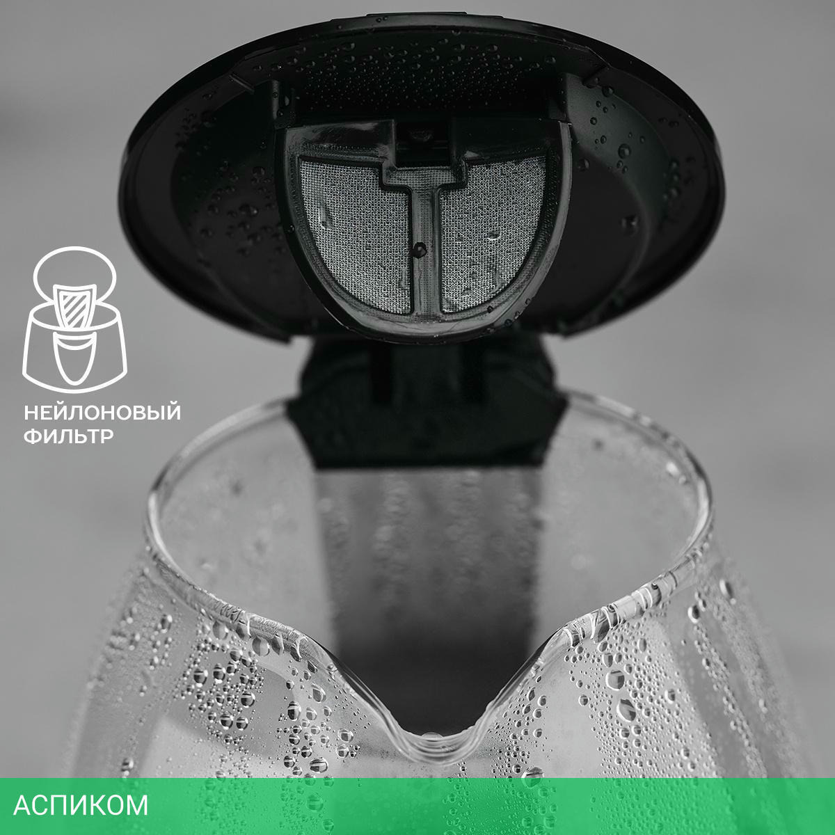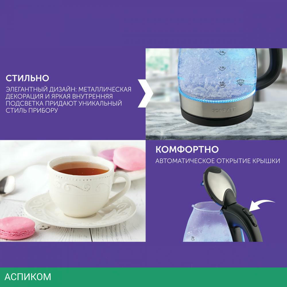 электрочайник / 2200.0 / 1.7 / механическое / черный; нержавеющая сталь / да / стекло