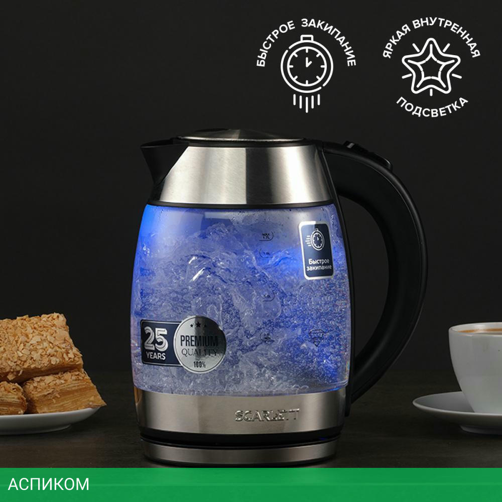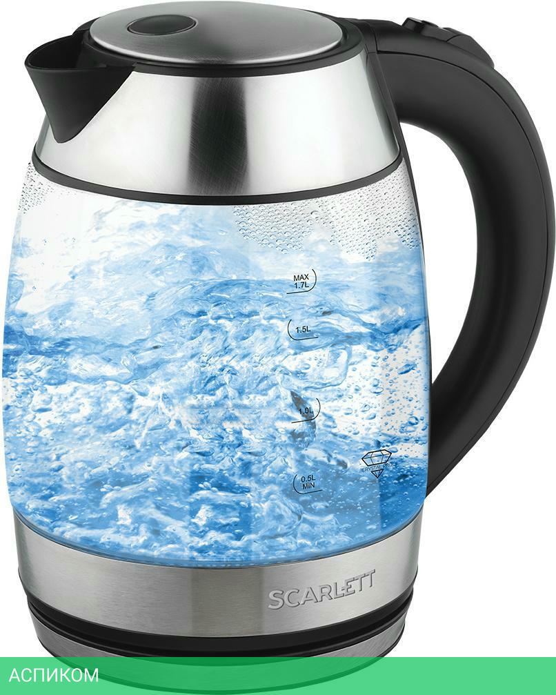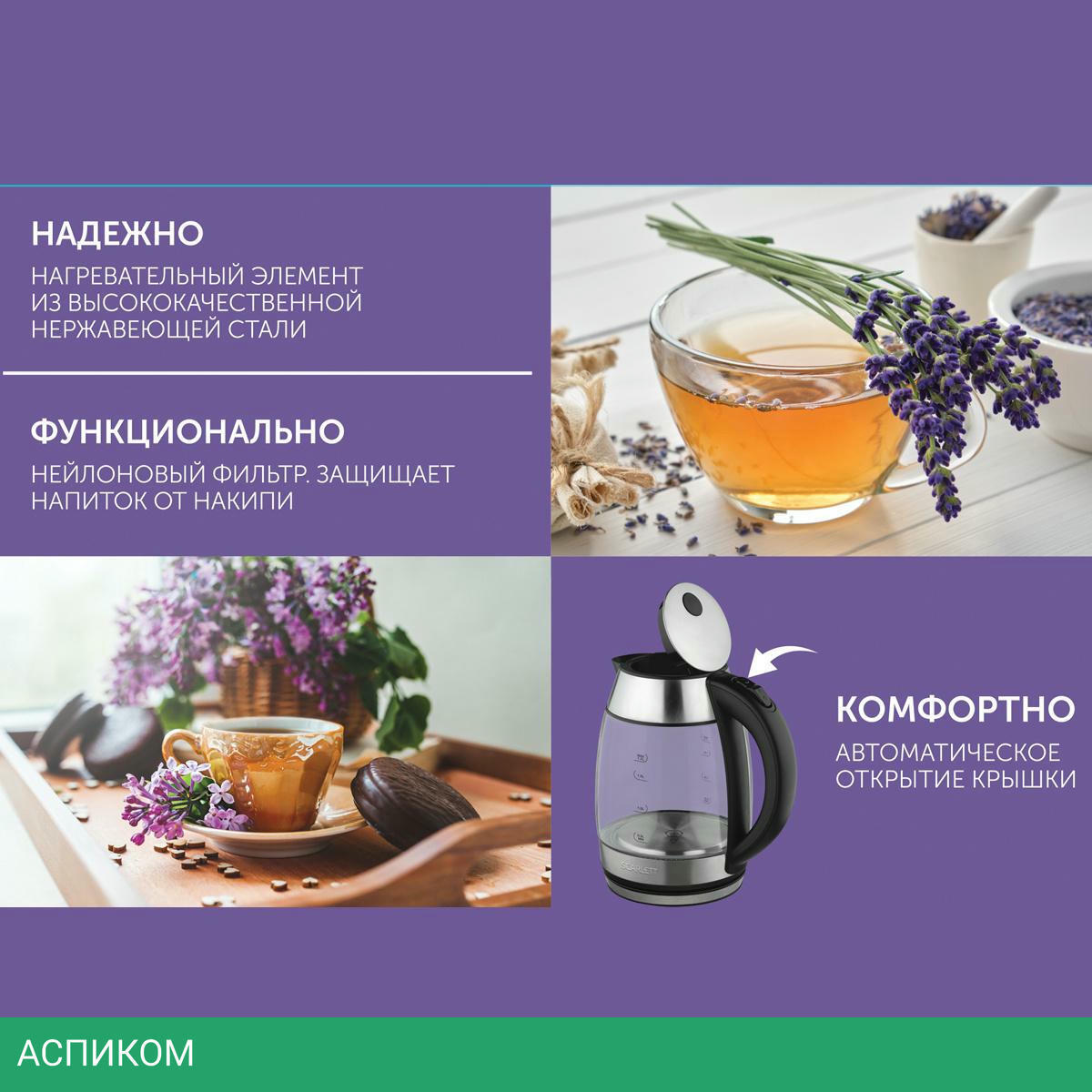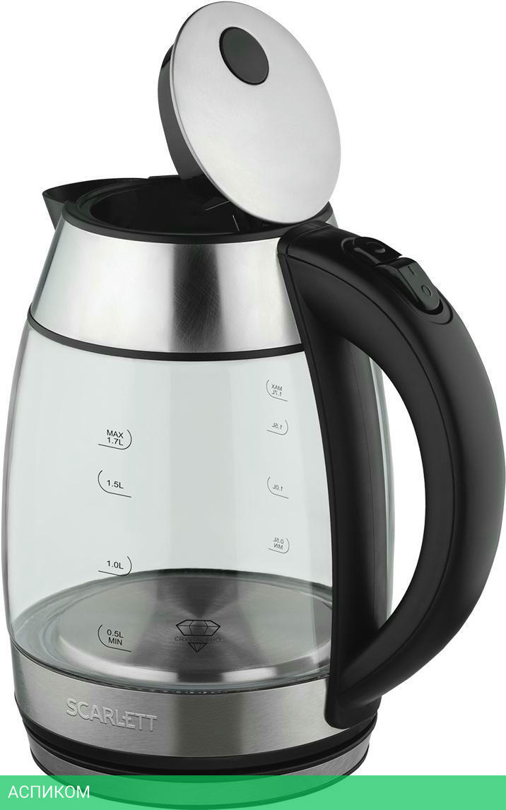 электрочайник / черный; нержавеющая сталь / 2200.0 / 1.7 / механическое / да / металл; пластик; стекло