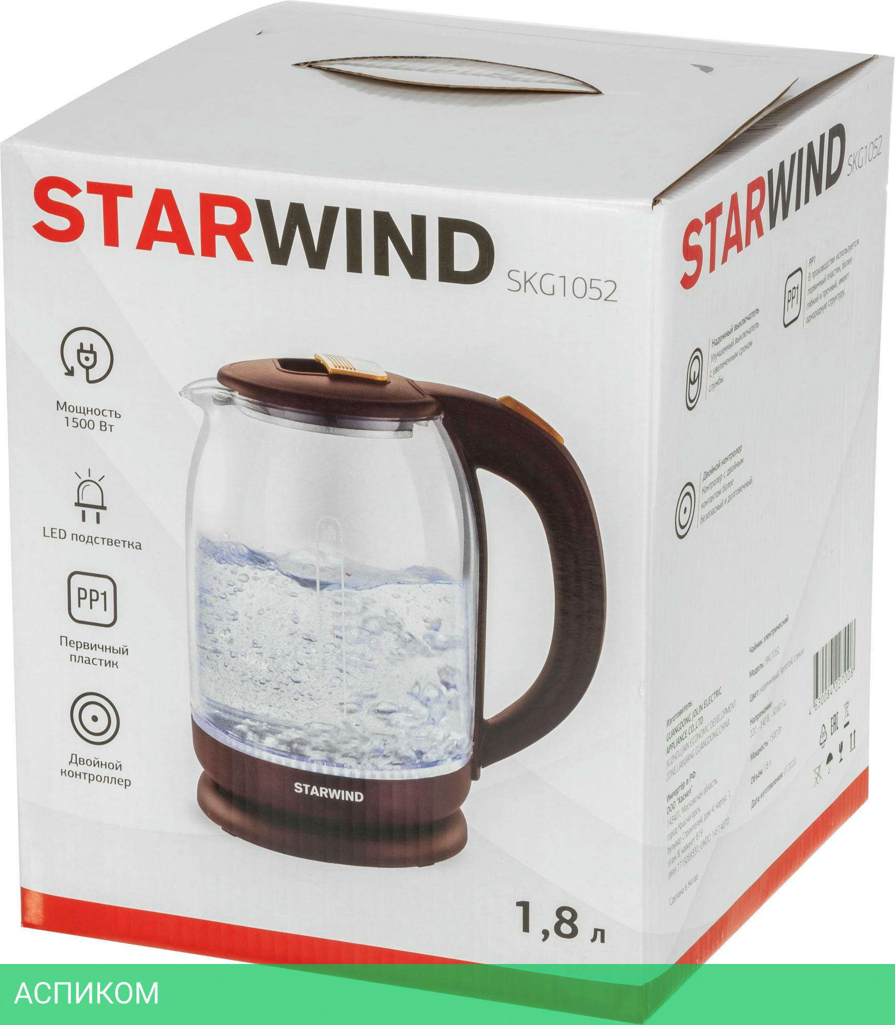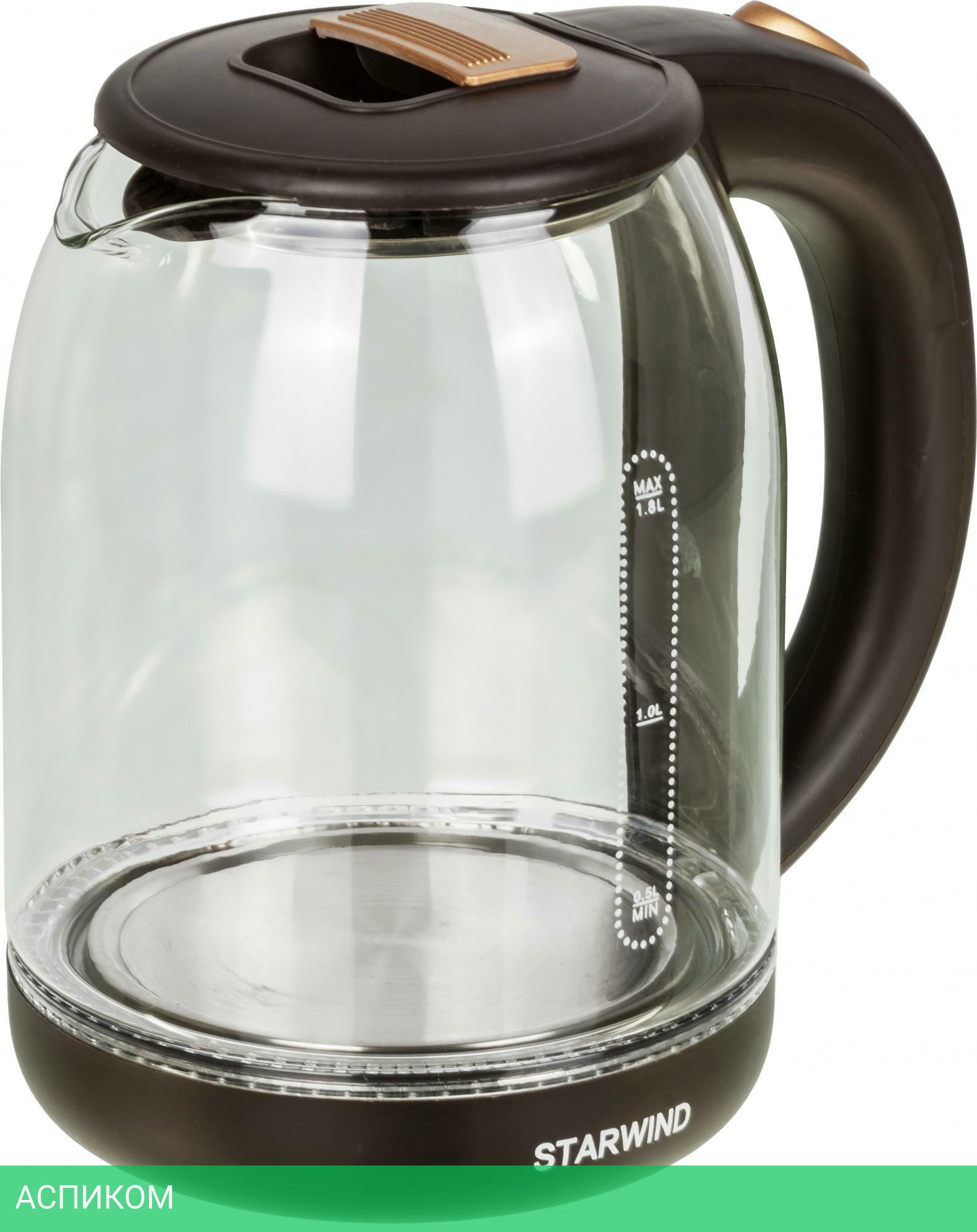 электрочайник / коричневый / 1500.0 / 1.8 / механическое / да / пластик; стекло