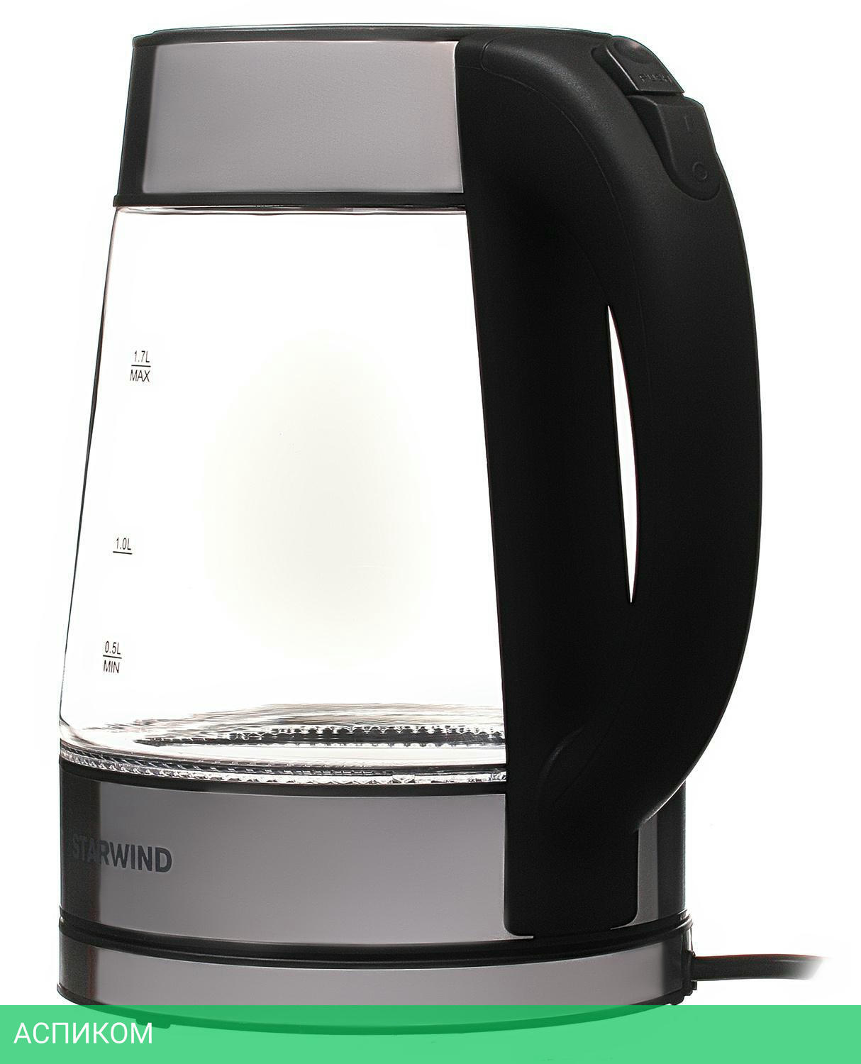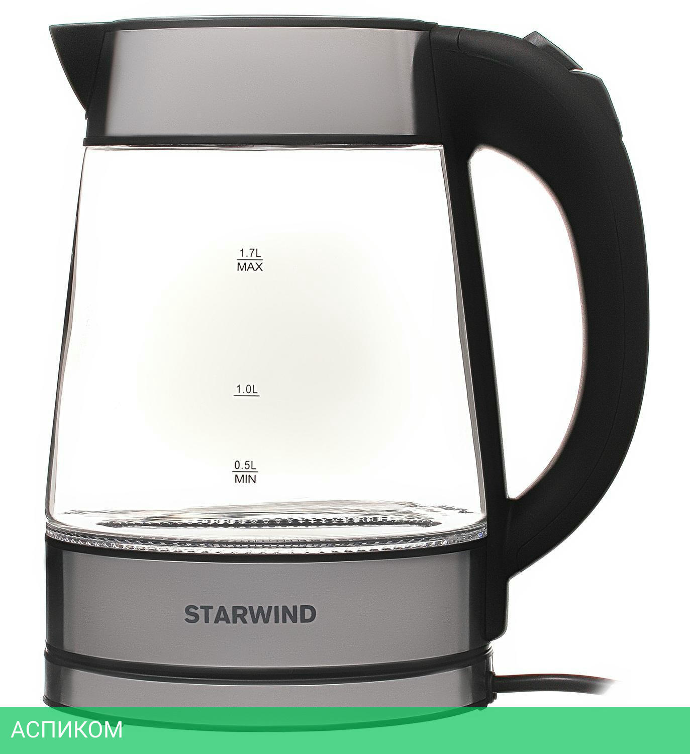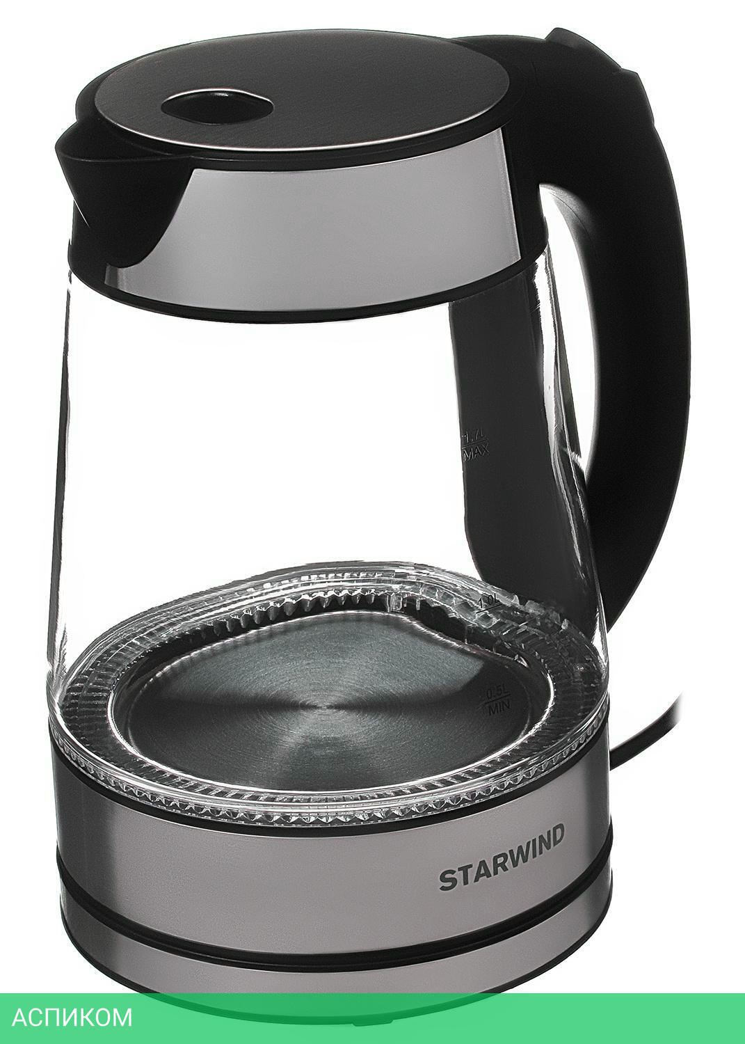 электрочайник / 2200.0 / 1.7 / механическое / черный; серебристый / да / металл; пластик; стекло