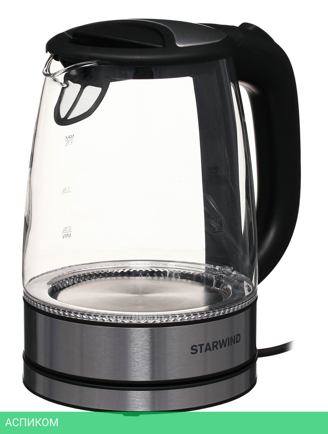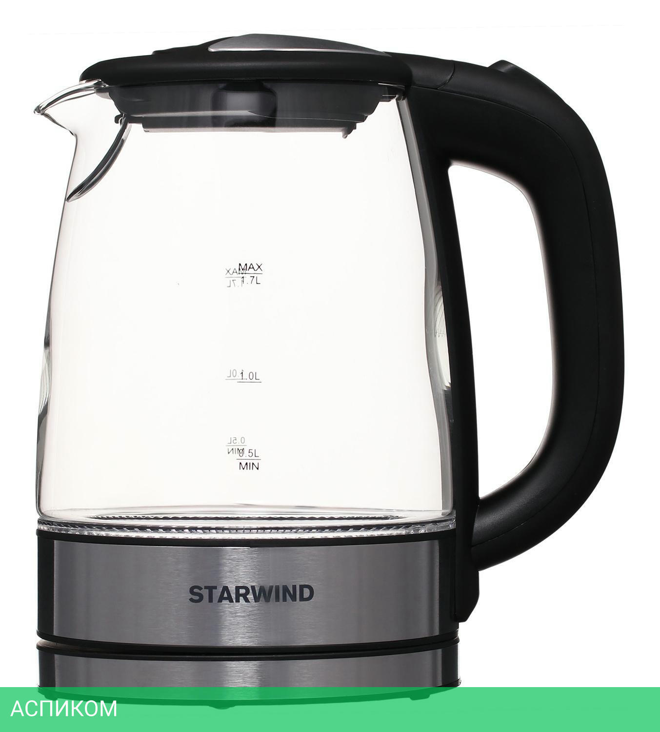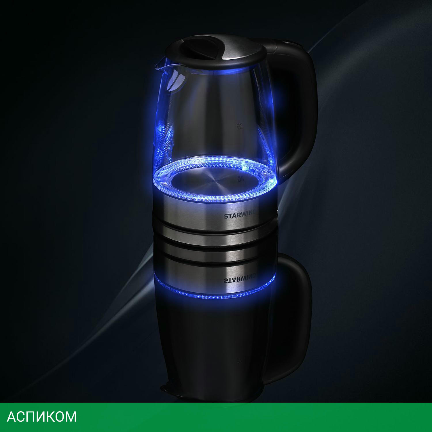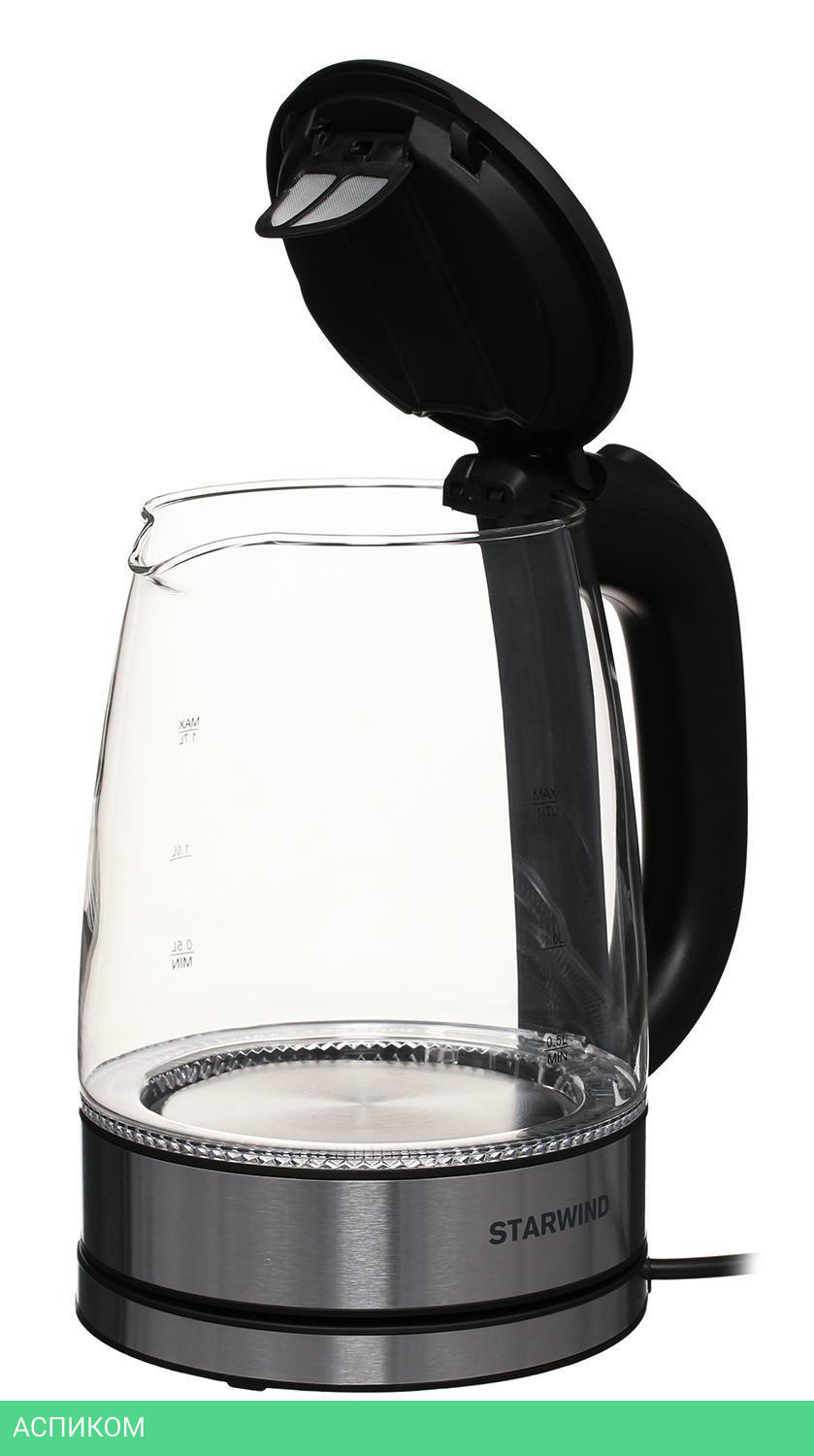 электрочайник / черный / 2200.0 / 1.7 / механическое / да / пластик; стекло