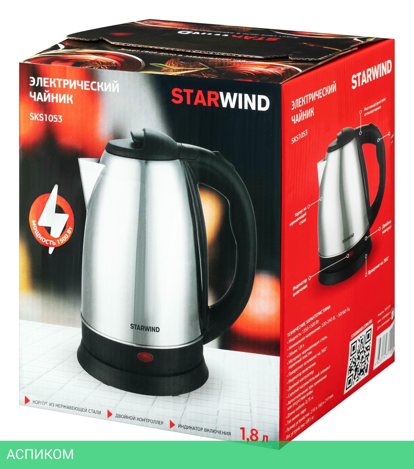 электрочайник / серебристый / 1500.0 / 1.8 / механическое / нет / металл; пластик