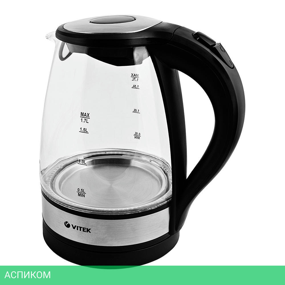 электрочайник / 2200.0 / 1.7 / механическое / черный; прозрачный / да / пластик; стекло