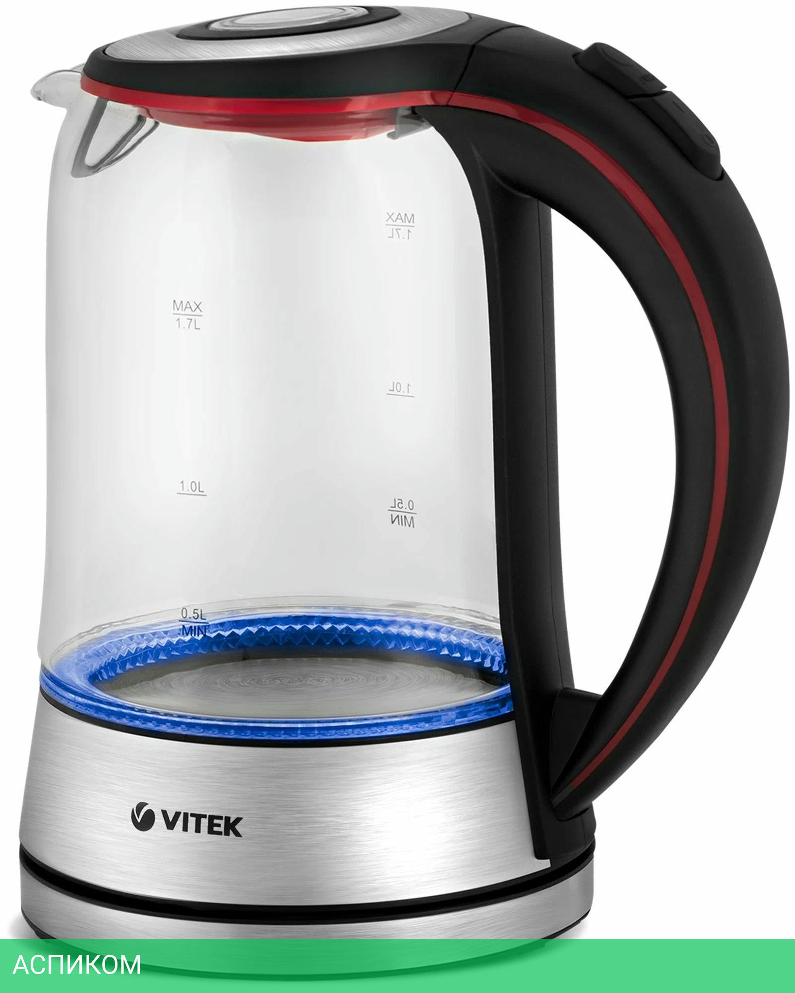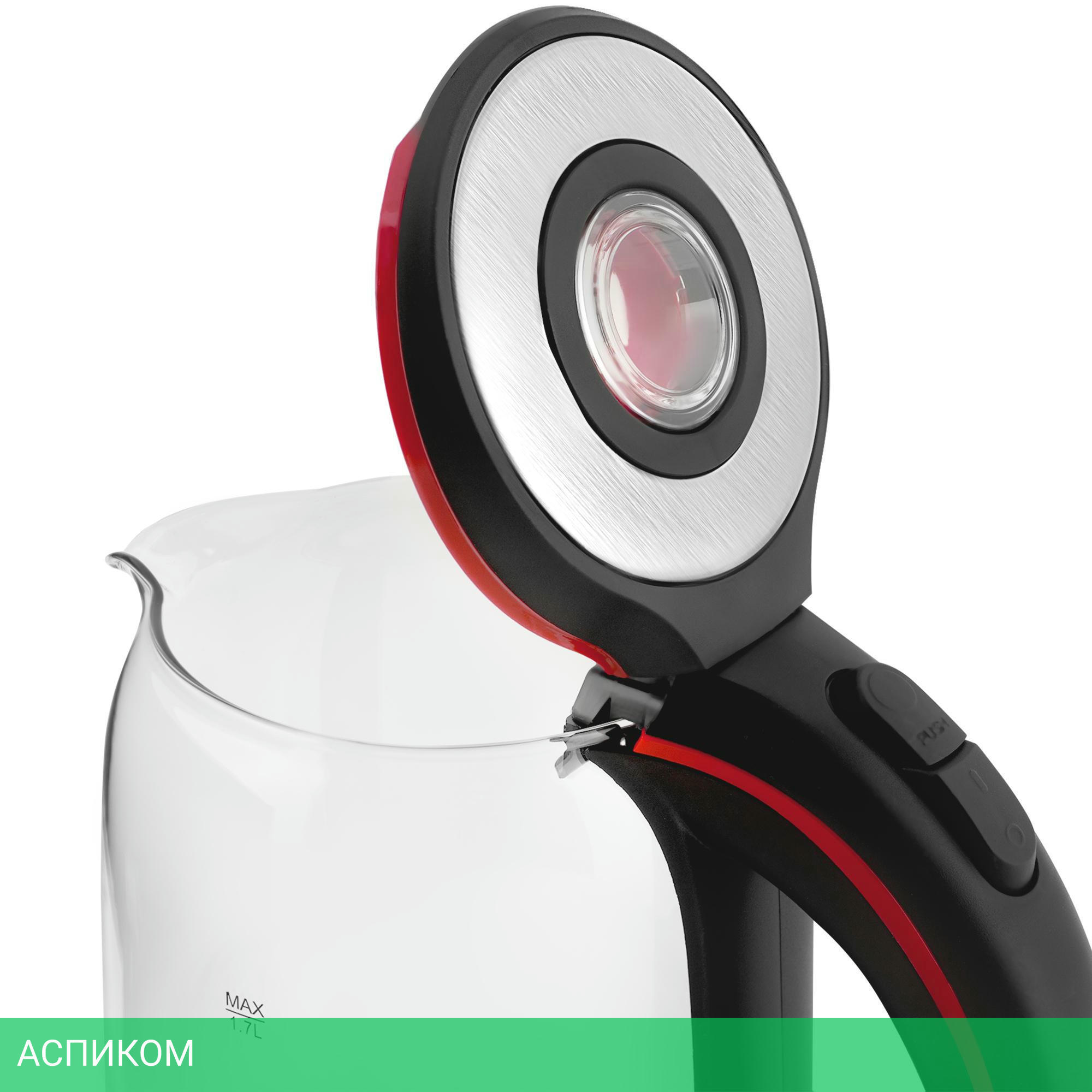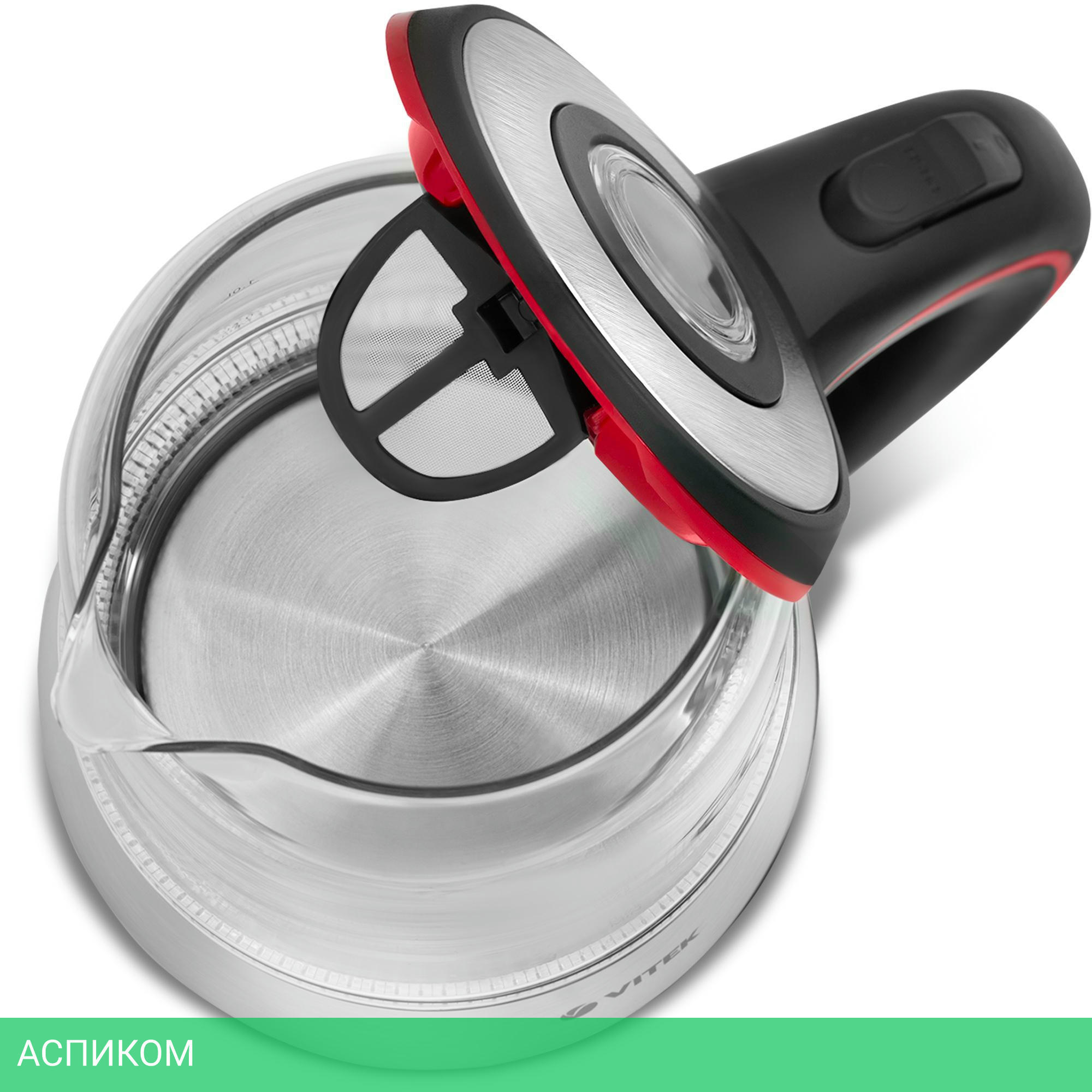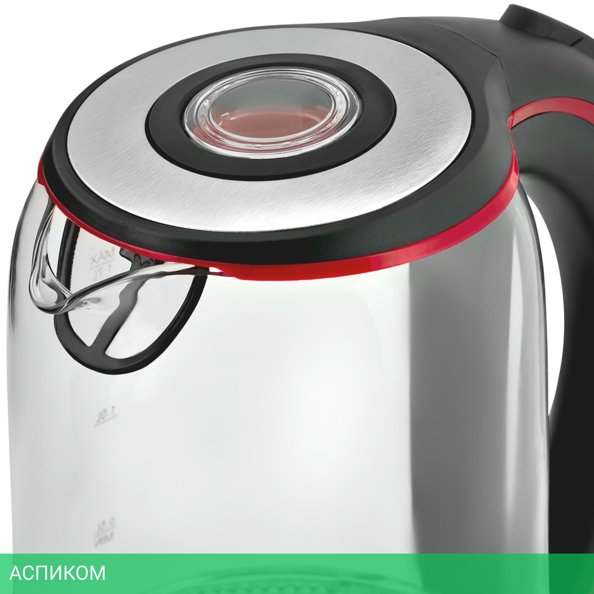 электрочайник / 2200.0 / 1.7 / механическое / прозрачный; нержавеющая сталь / да / стекло