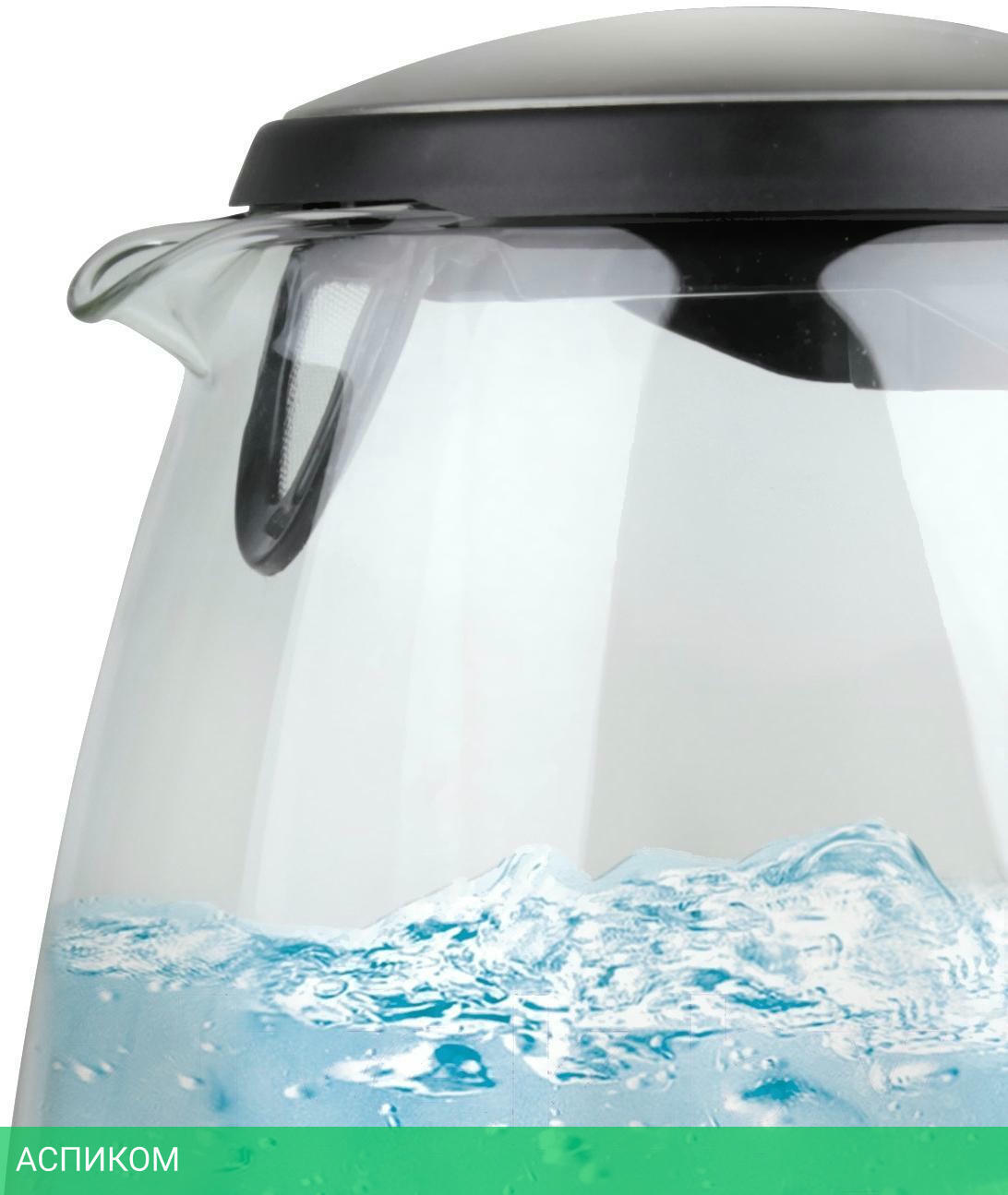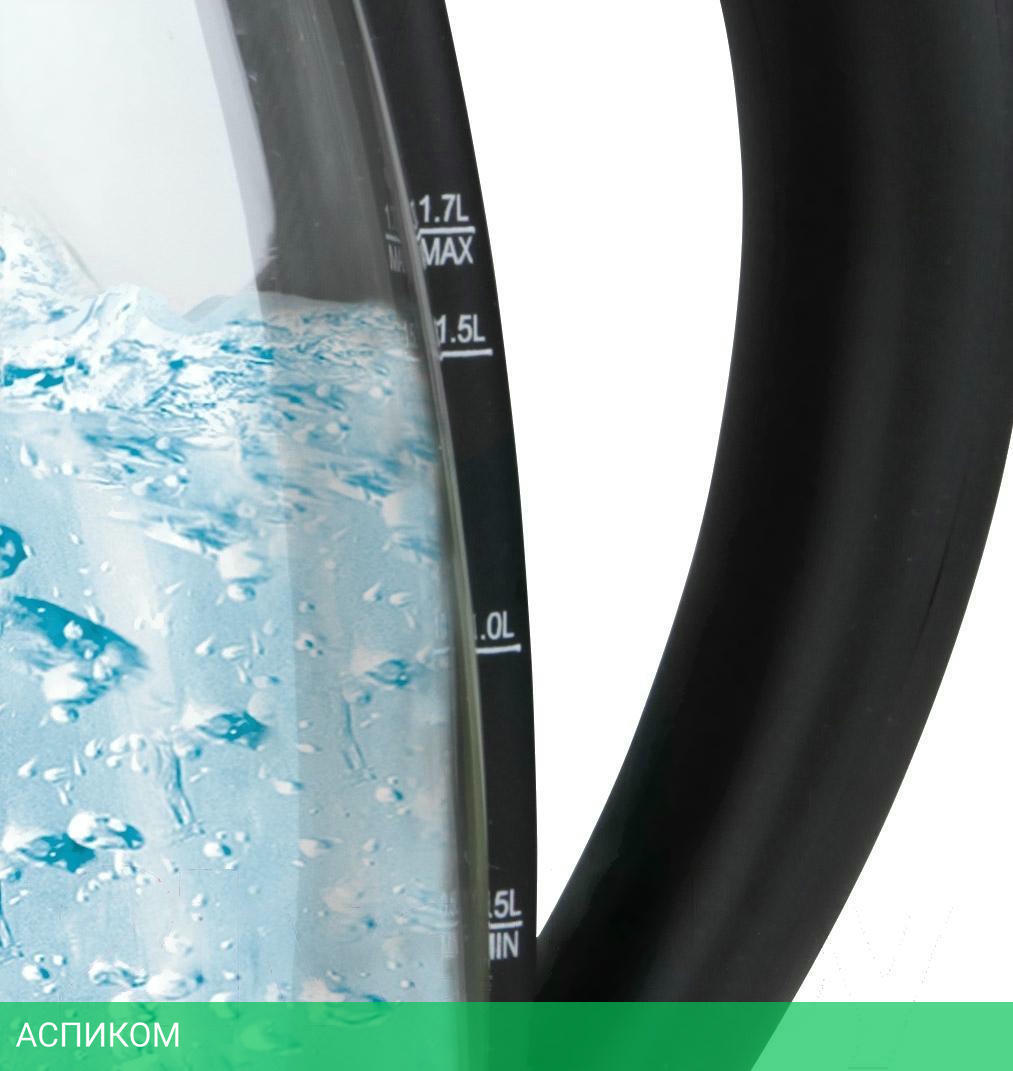 электрочайник / 2200.0 / 1.7 / механическое / черный; прозрачный / да / металл; стекло
