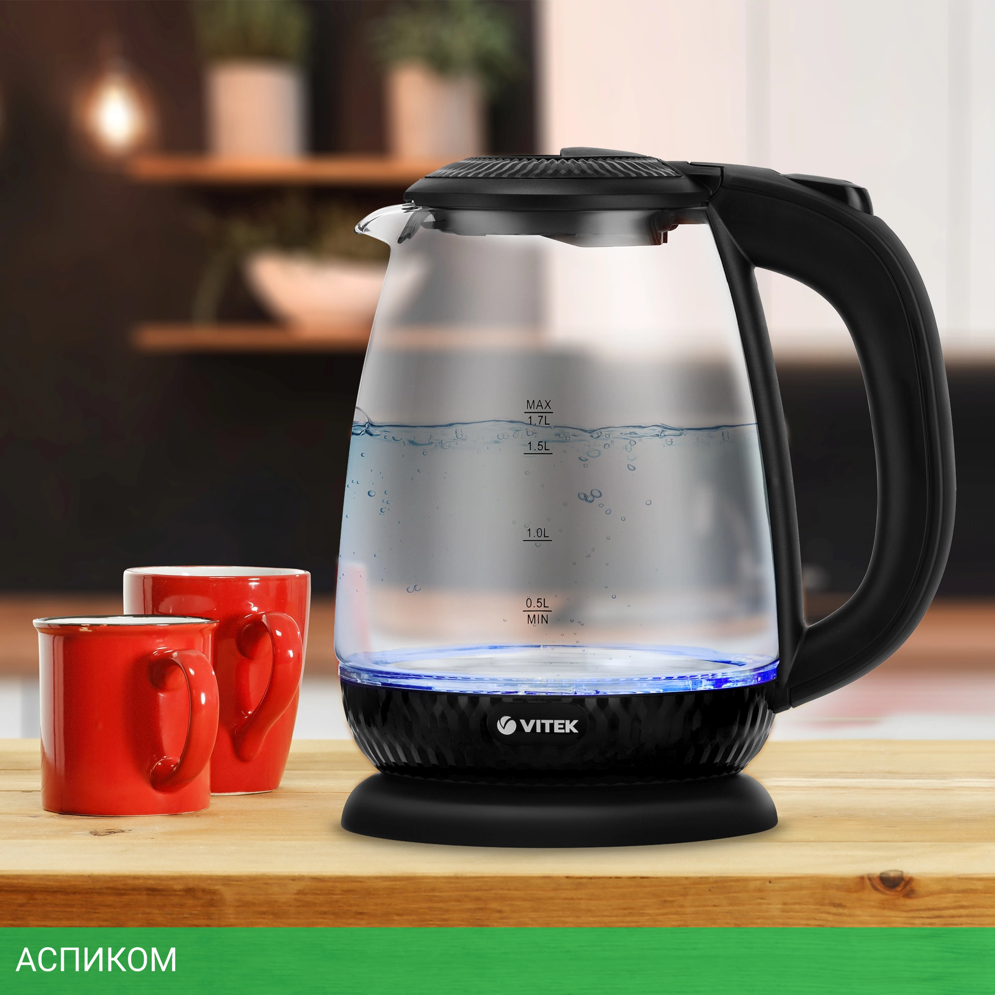 электрочайник / черный / 2200.0 / 1.7 / механическое / да / пластик; стекло