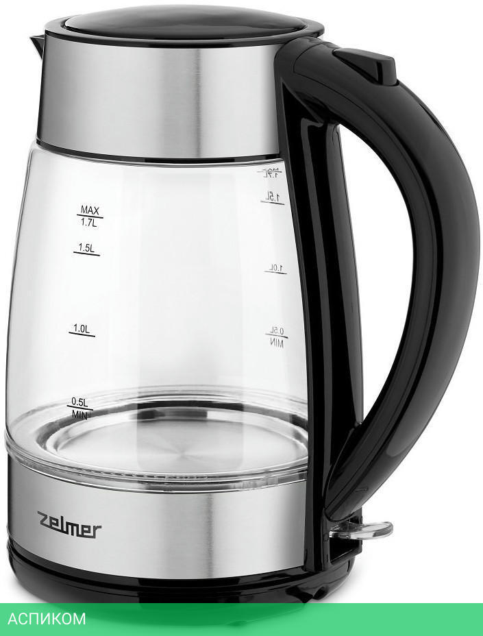 электрочайник / черный; нержавеющая сталь / 2200.0 / 1.7 / механическое / да / металл; пластик; стекло