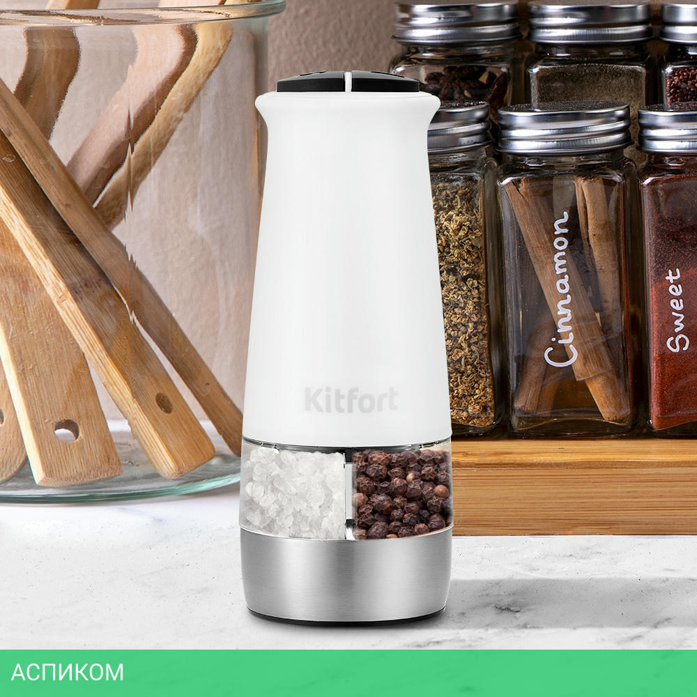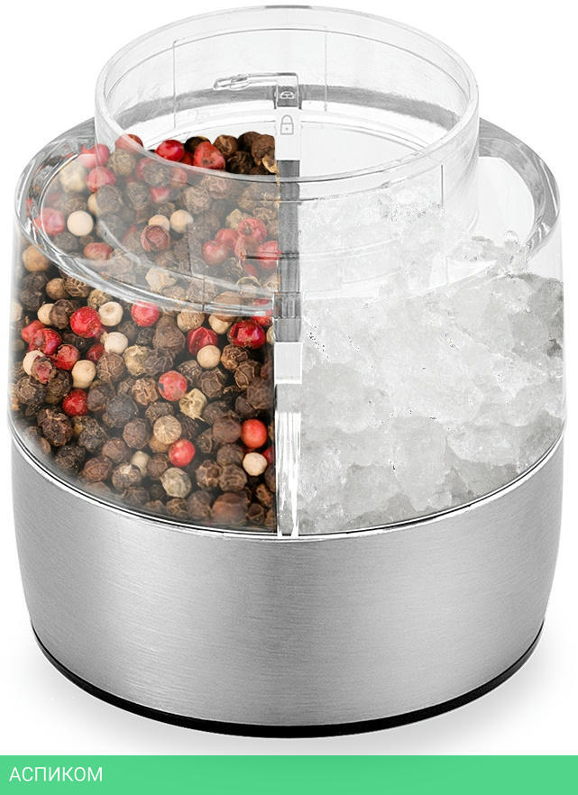 Устройство имеет специальную конструкцию «2 в 1»: ёмкость для специй разделена на две части для измельчения двух видов специй.