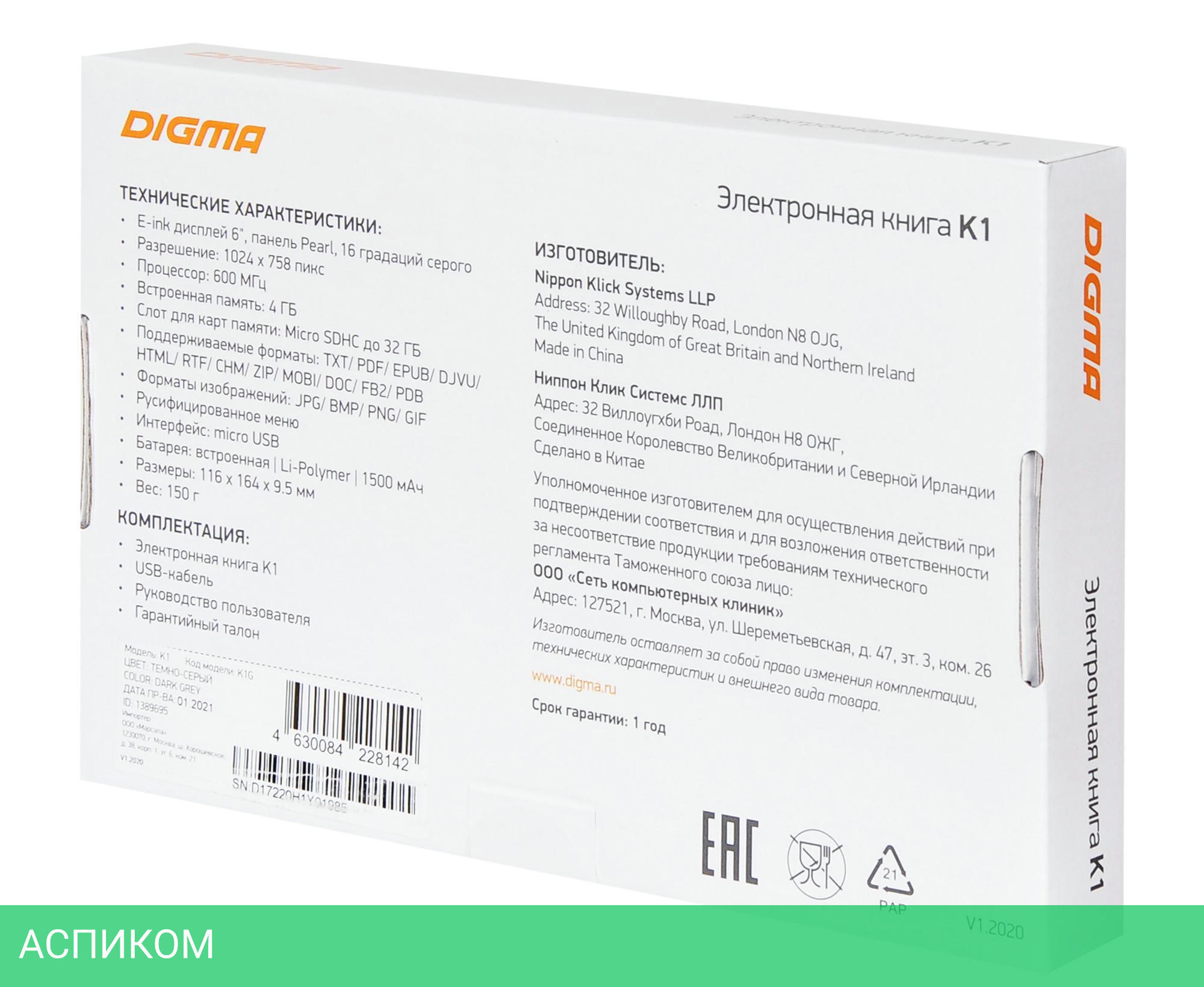 Электронная книга K1 USB-кабель Руководство пользователя Гарантийный талон