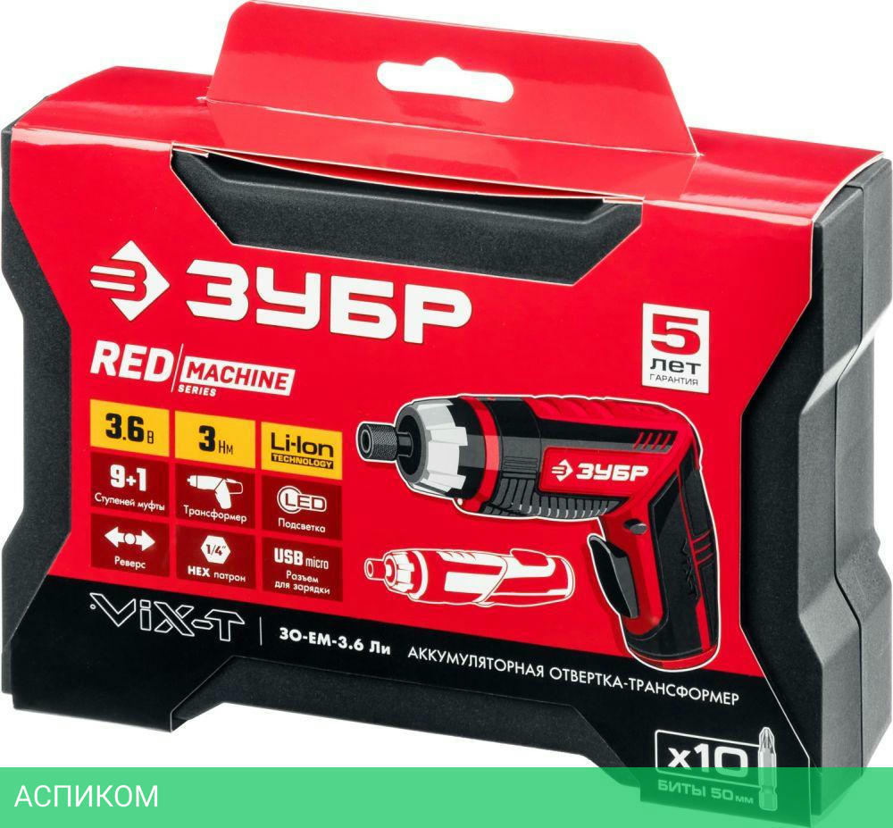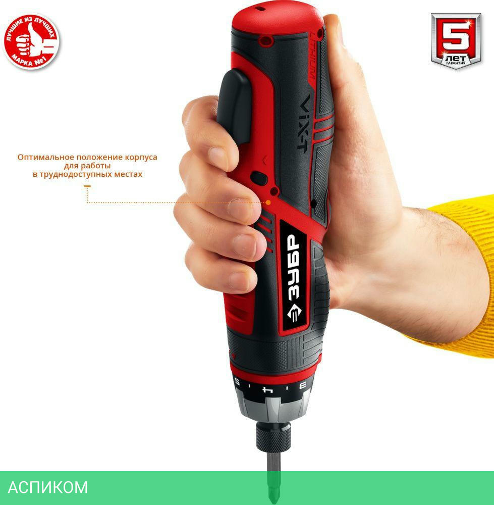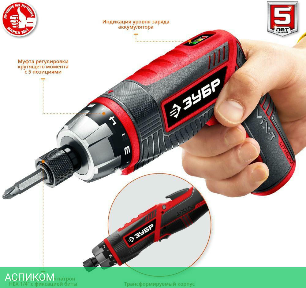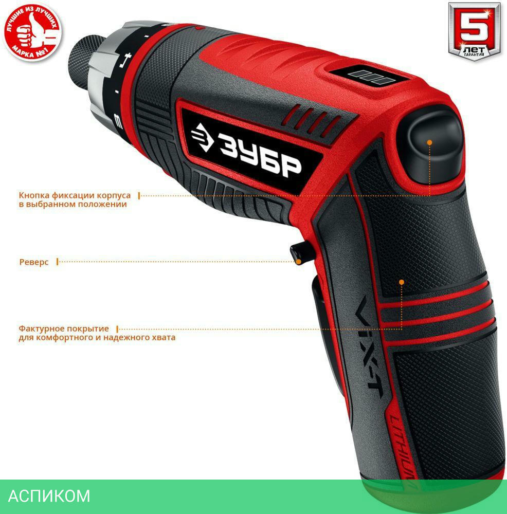 Многофункциональная отвертка с изменяемыми положениями рукоятки и регулировкой крутящего момента. Компактная отвертка с эргономичным дизайном и широким набором функций. Литий-ионная технология ЗУБР нового поколения. Трансформируемый корпус для удобного хвата при любой работе.