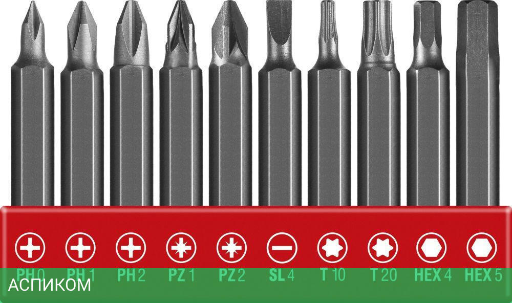 Отвертка электрическая; Зарядное устройство; Аккумуляторная батарея(встроенная); Биты 50 мм: 10 PH0, PH1, PH2, PZ1, PZ2, S4, T10, T20, HEX4, HEX5; Кейс