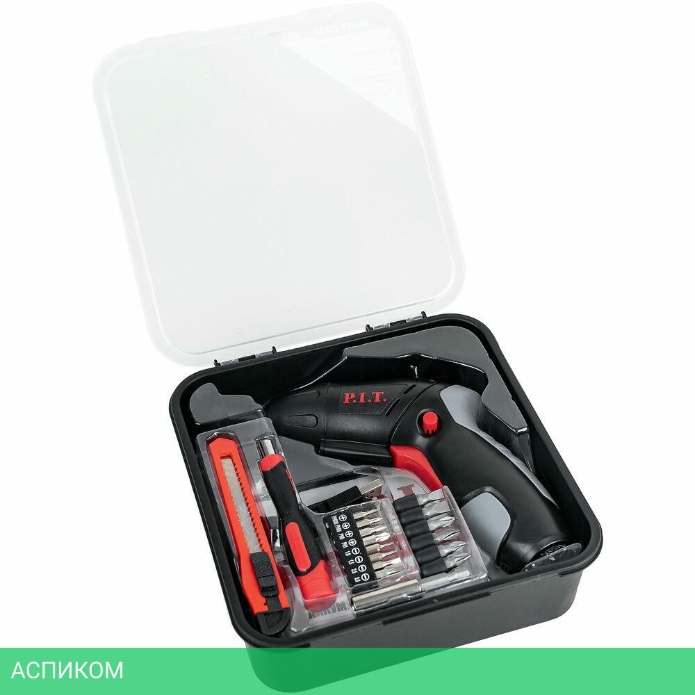 Отвертка аккумуляторная. Руководство по эксплуатации. Micro-USB провод для зарядки. Переходник с магнитным держателем. Прецизионная отвертка + 8 бит. Набор сменных насадок - 6 шт. Канцелярский нож. Упаковка.