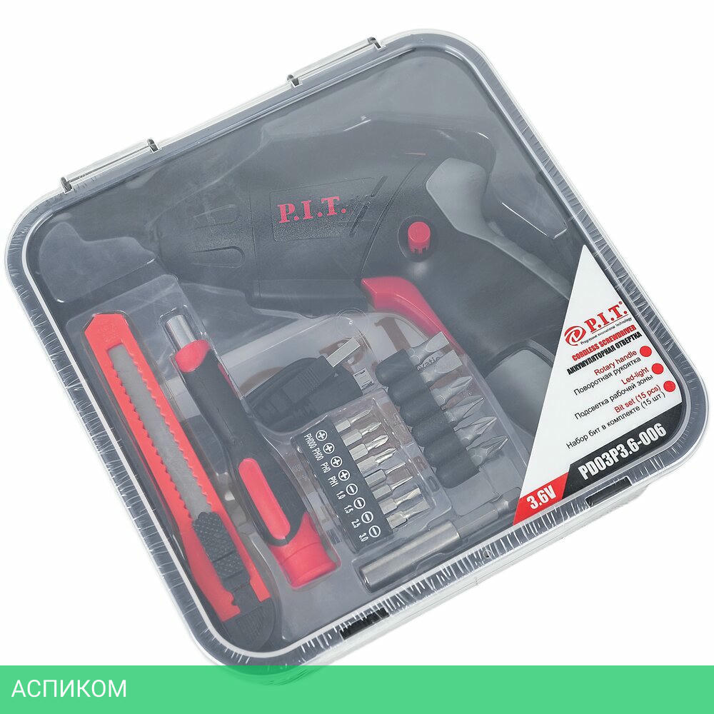 электроотвертка / аккумулятор / да / 3.6 / шестигранник 1/4" / да / 3.5 / 6,35 мм / 180.0 / 0.64 / Li-ion / 1.3