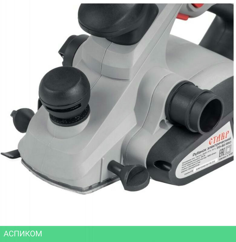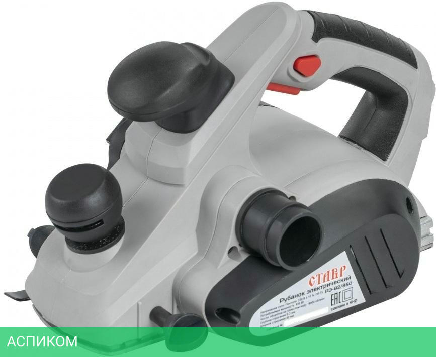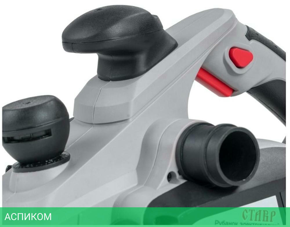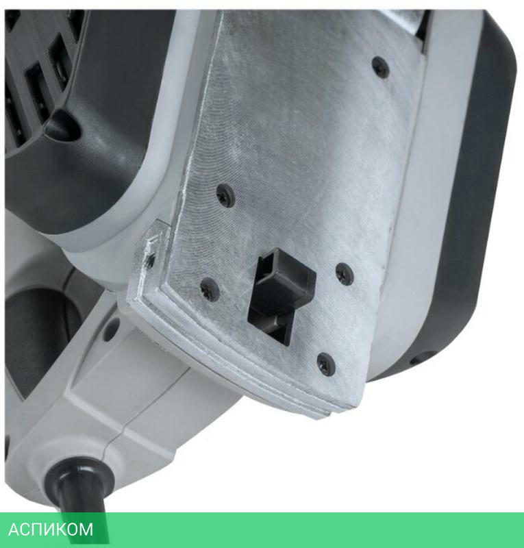 Острые ножи из быстрорежущей стали, блокировка кнопки запуска, параллельный упор, опорная пята,V-образный паз, расположенный на подошве, комбинированная рукоятка для регулировки глубины строгания.