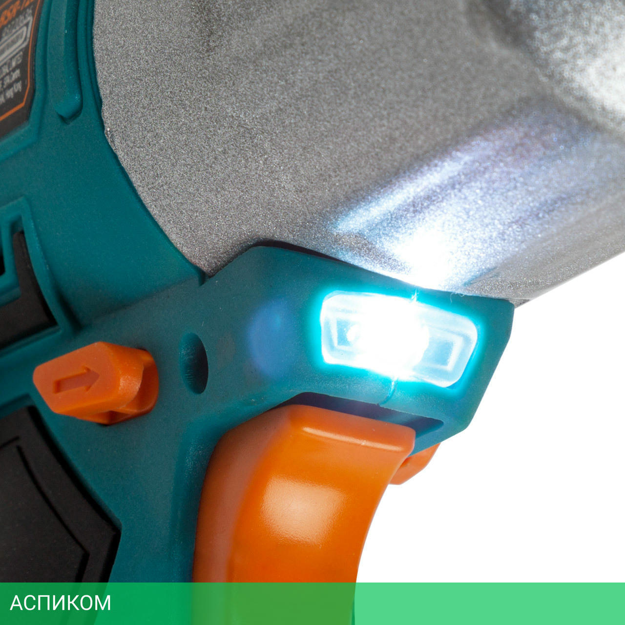 Компактный и эргономично сконструированный корпус, Подсветка рабочей зоны, Высокий крутящий момент, Возможность работы как от Li-Ion батареи так и 12В сети автомобиля, Торценые головки из хромванадиевой стали, Увеличенная длина кабеля 4 м.