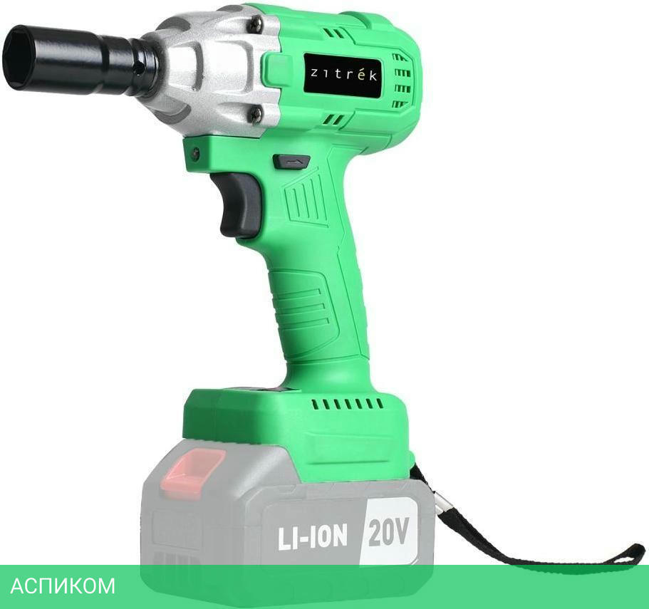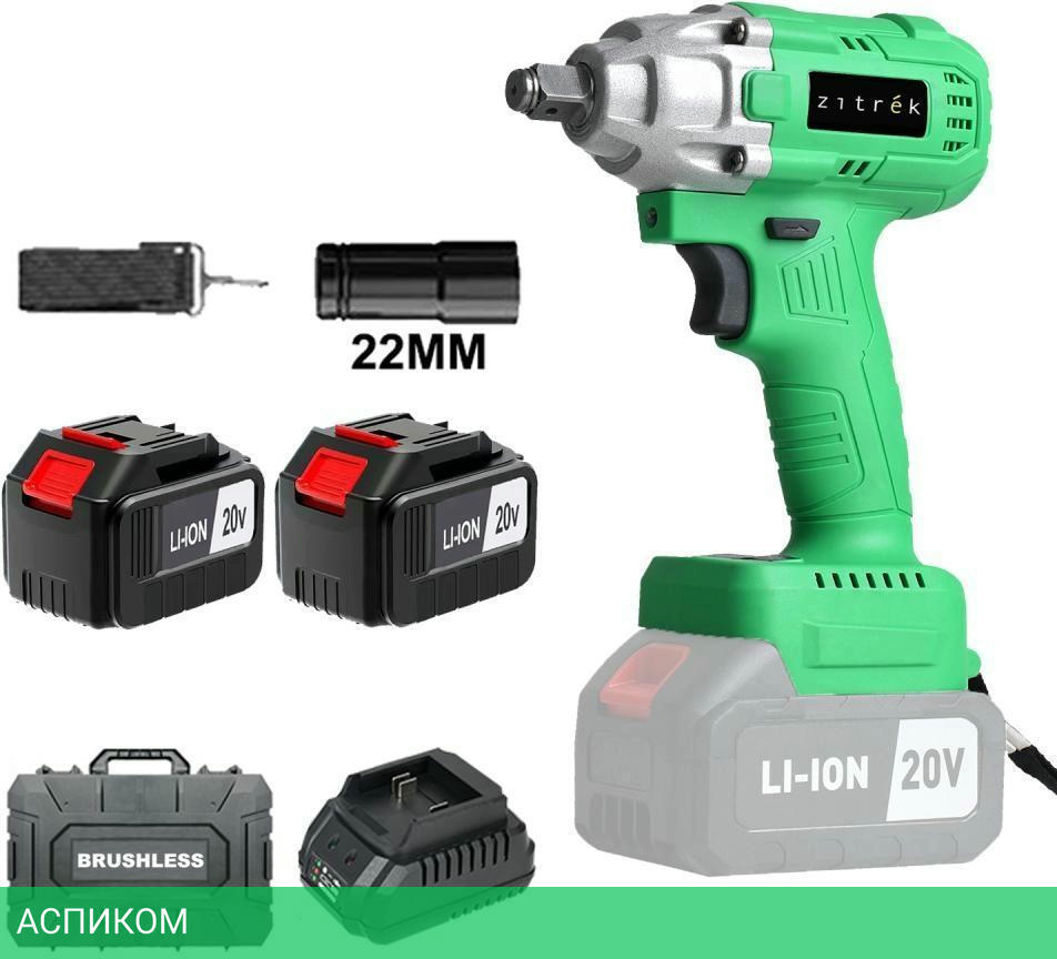 Гайковерт аккумуляторный ударный, АКБ 6 Ач - 2 шт., зарядное устройство, головка накидная (22 мм.), ремешок, руководство по эксплуатации, кейс.